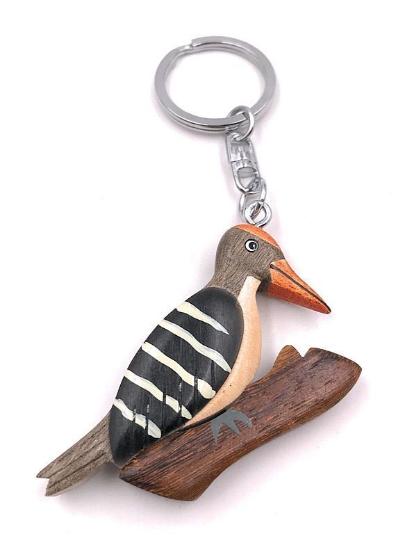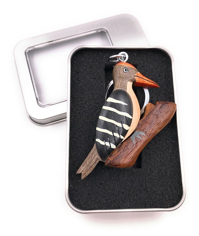 Schlüsselanhänger Holz Specht Vogel Wald auf Ast Buntspecht in Geschenkbox