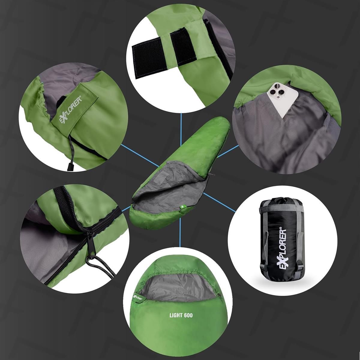 Schlafsack Explorer Light600 Leicht Hüttenschlafsack Mini Ultrakompakt grün