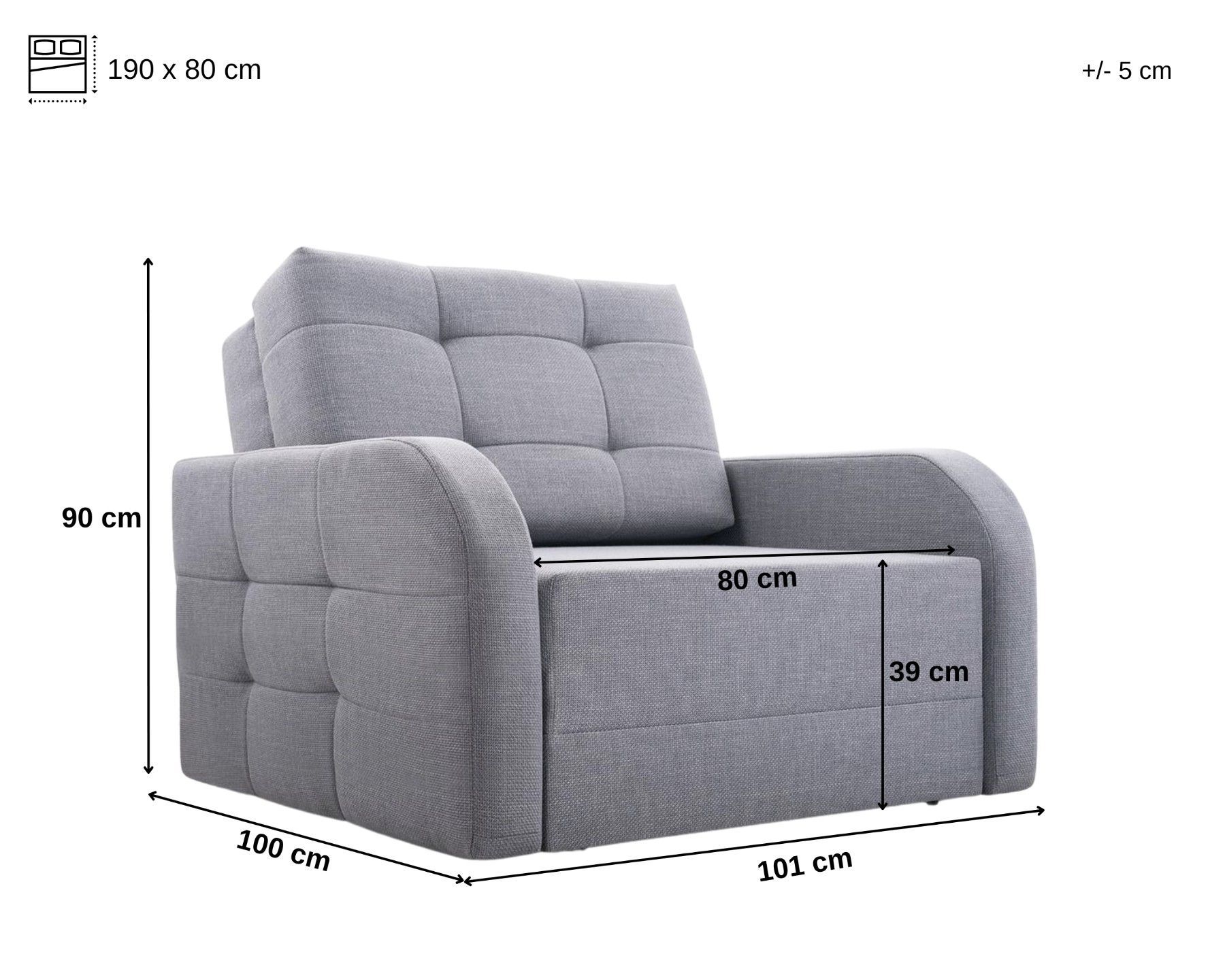 Schlafsessel Porto 80 Grau Sofa mit Schlaffunktion, Schlafsofa, Bettsofa