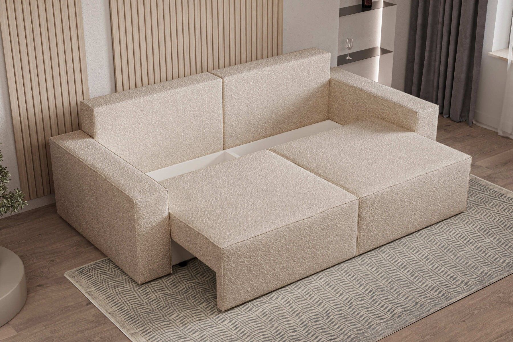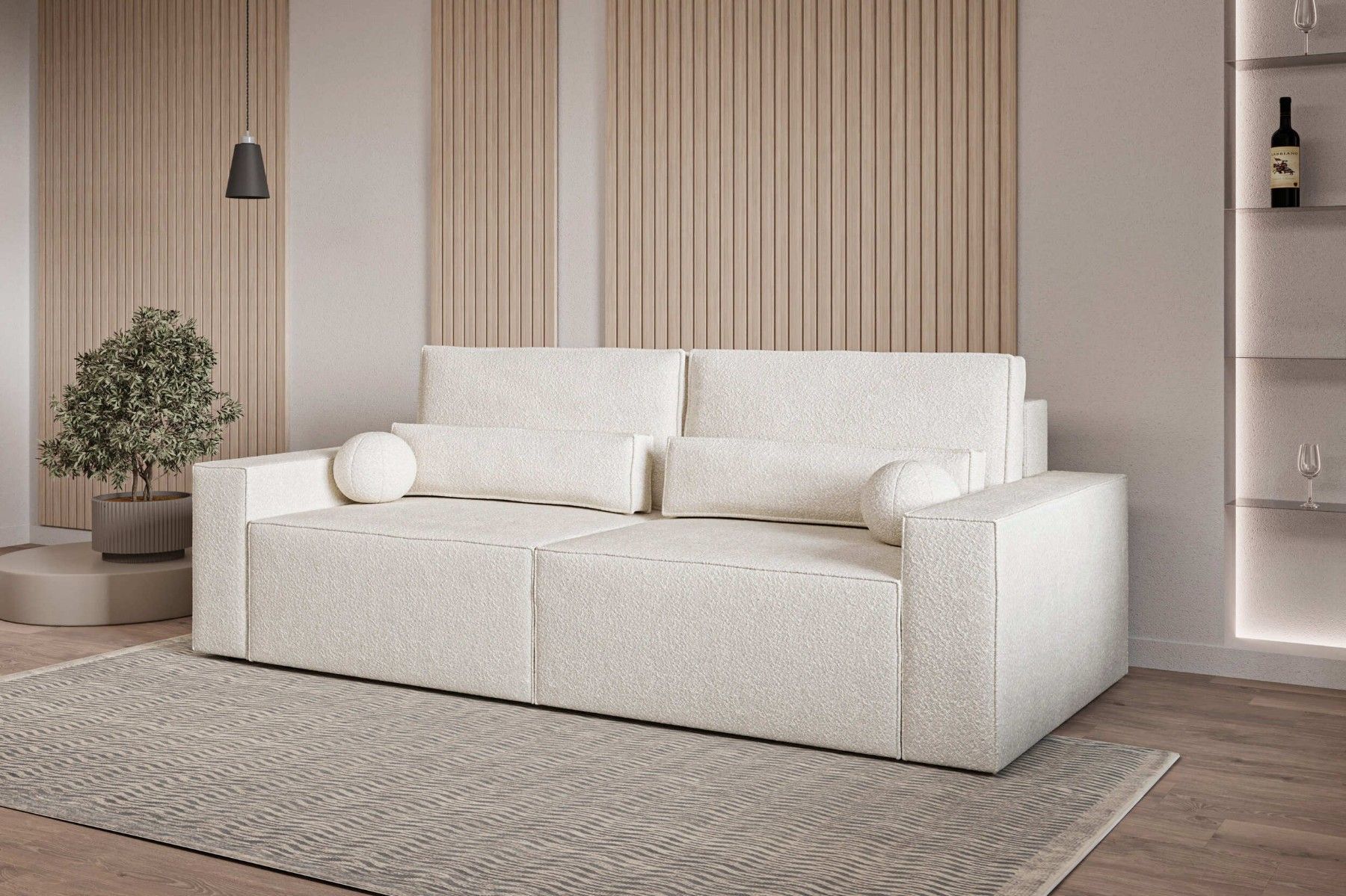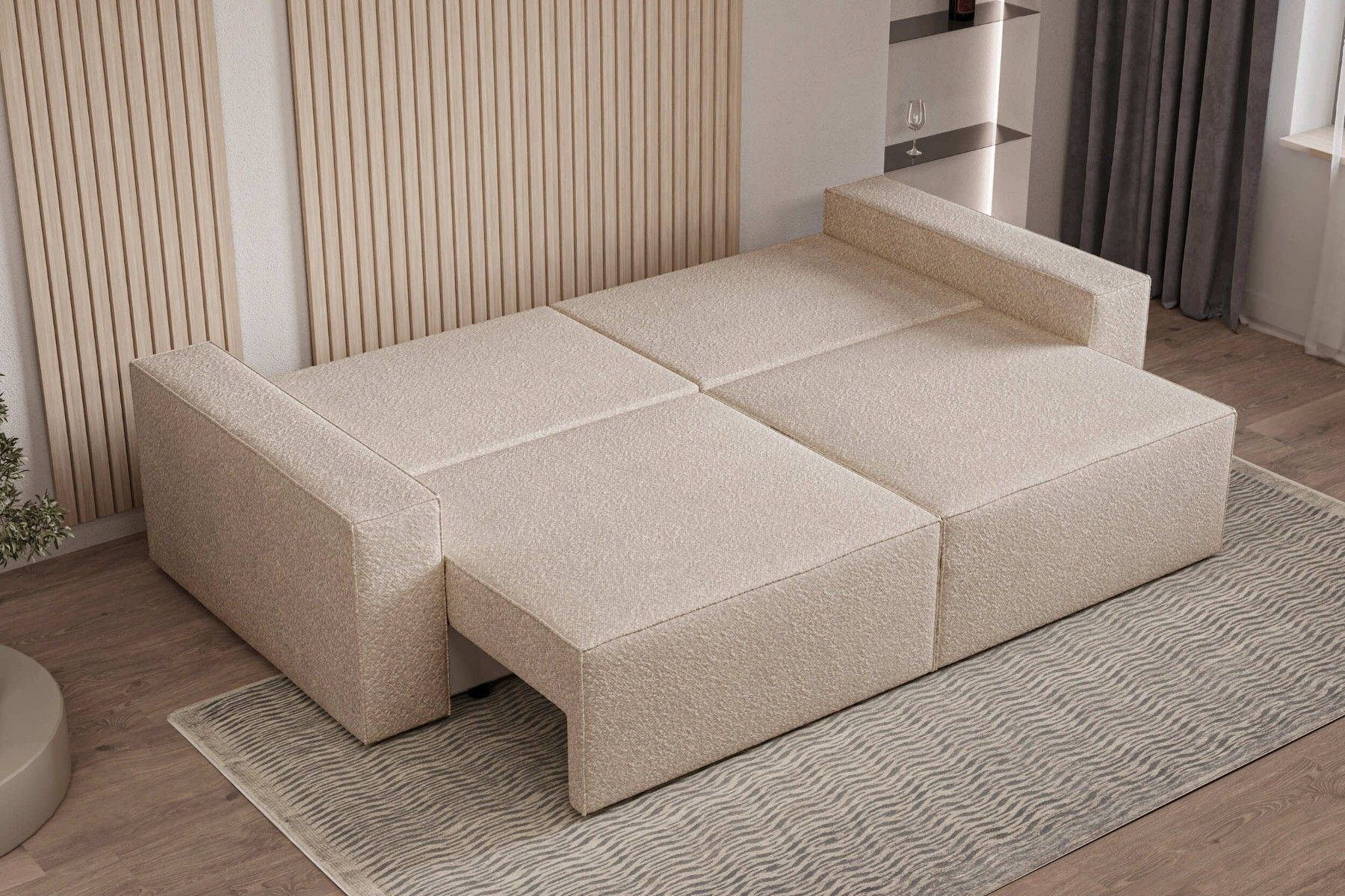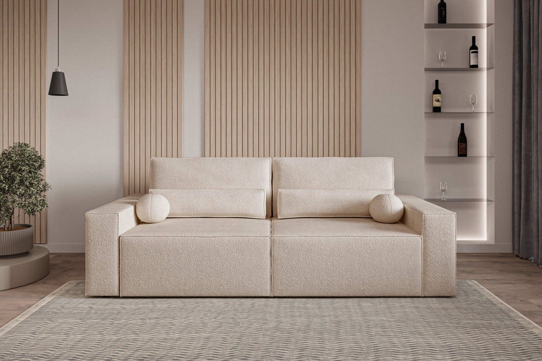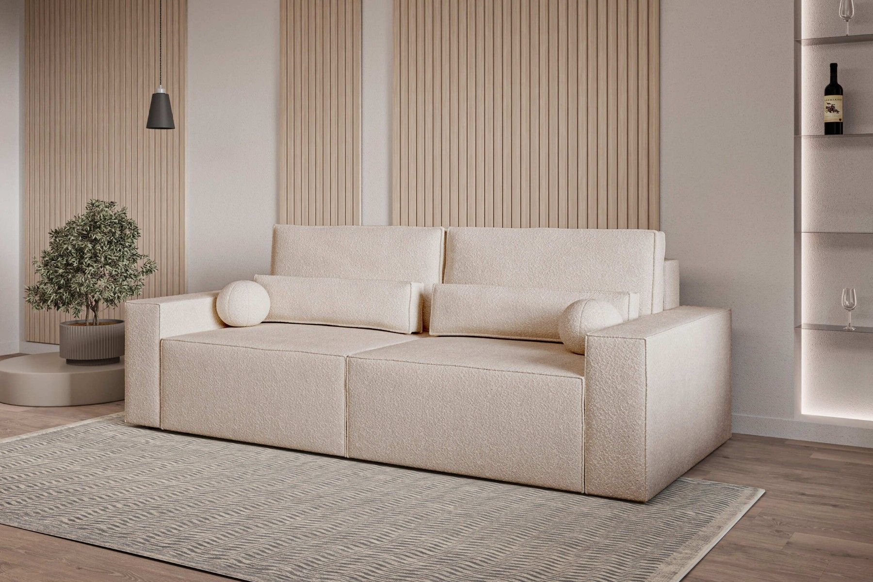 Schlafsofa DENVER Beige Polstersofa aus Bouclé Sofa mit Schlaffunktion und Bettkasten