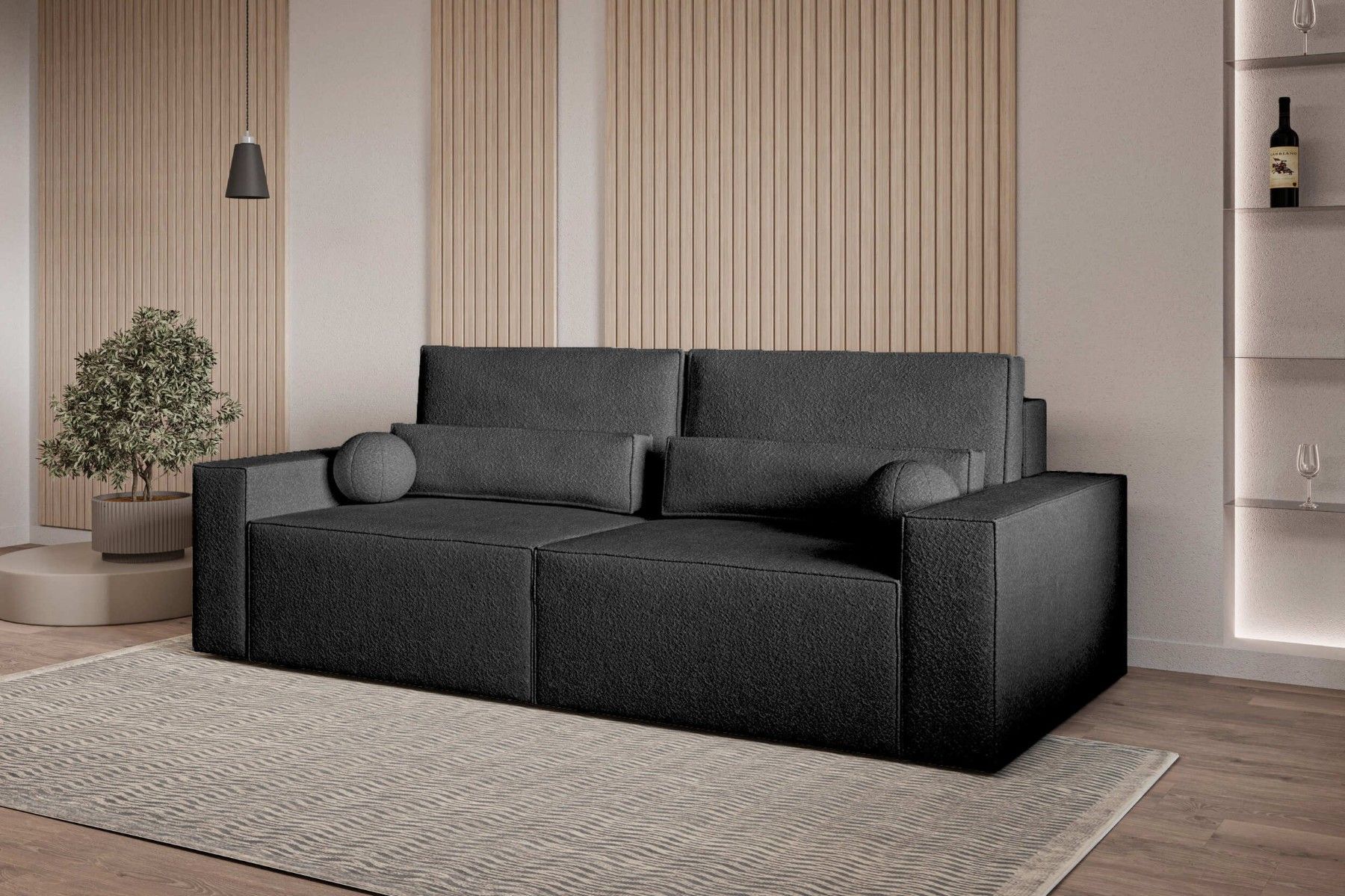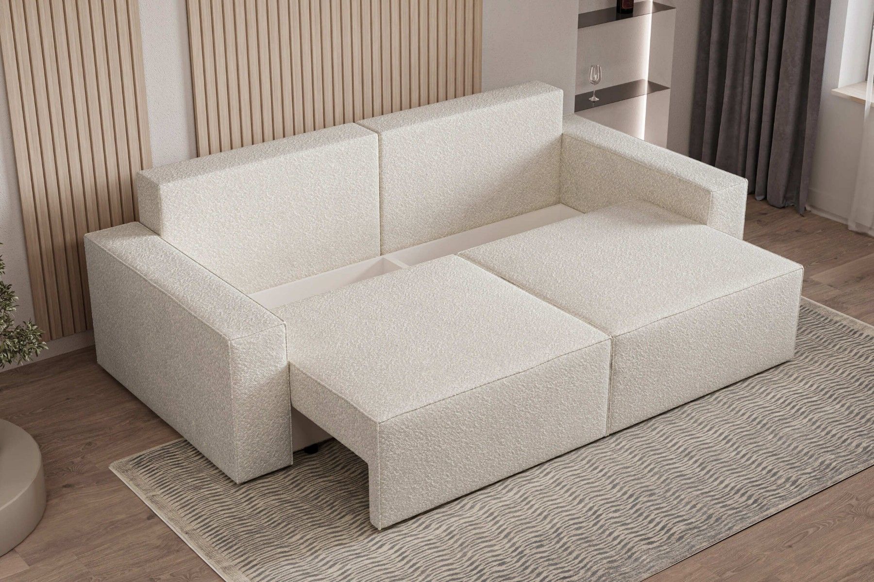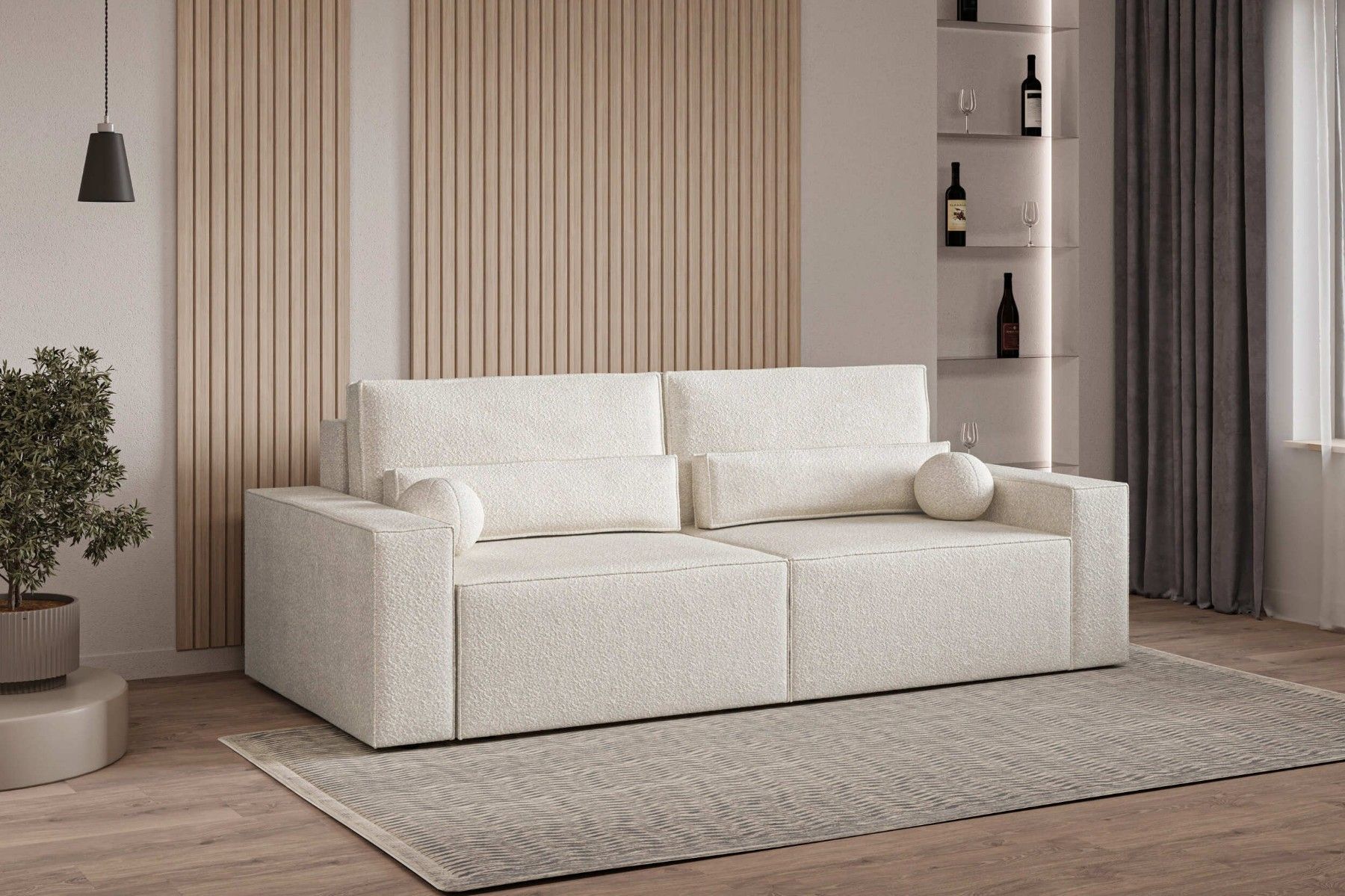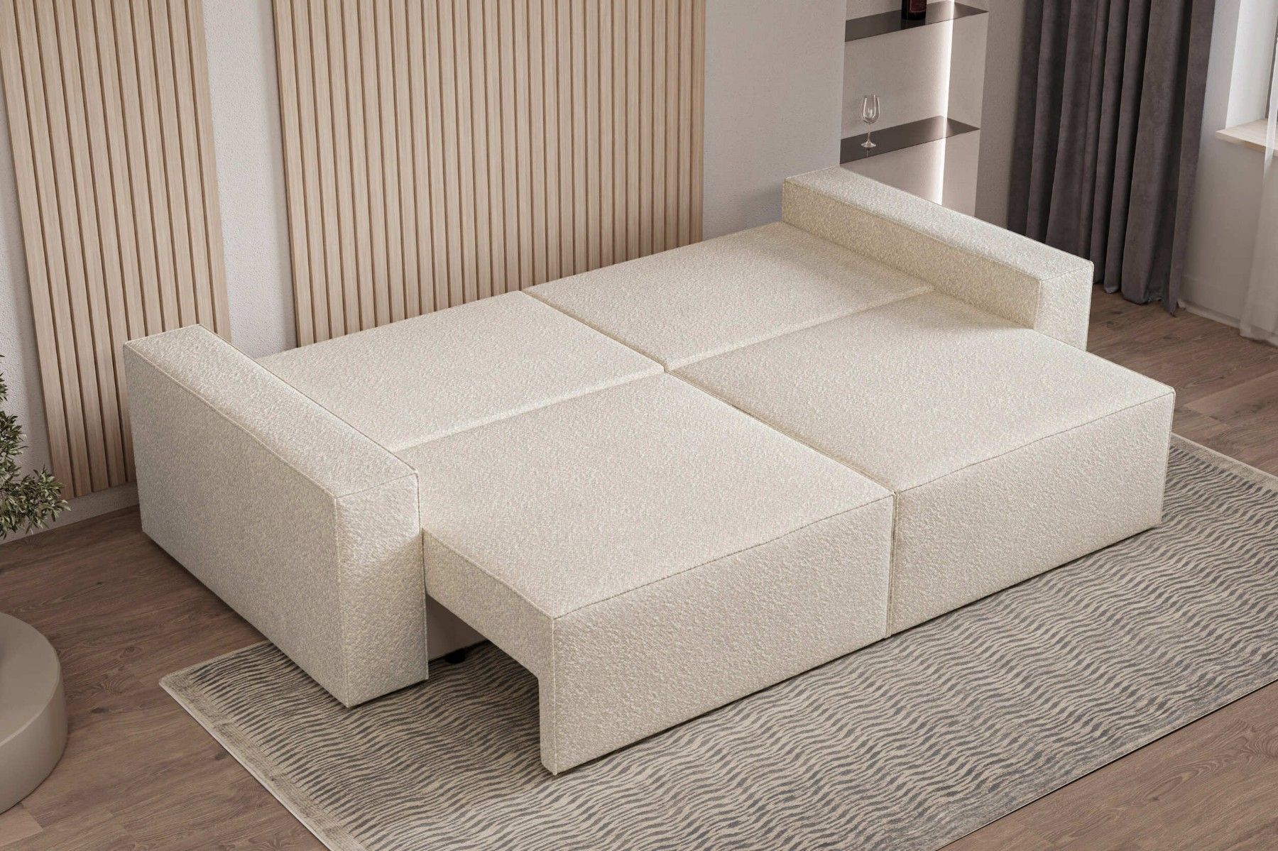 Schlafsofa DENVER Beige Polstersofa aus Bouclé Sofa mit Schlaffunktion und Bettkasten