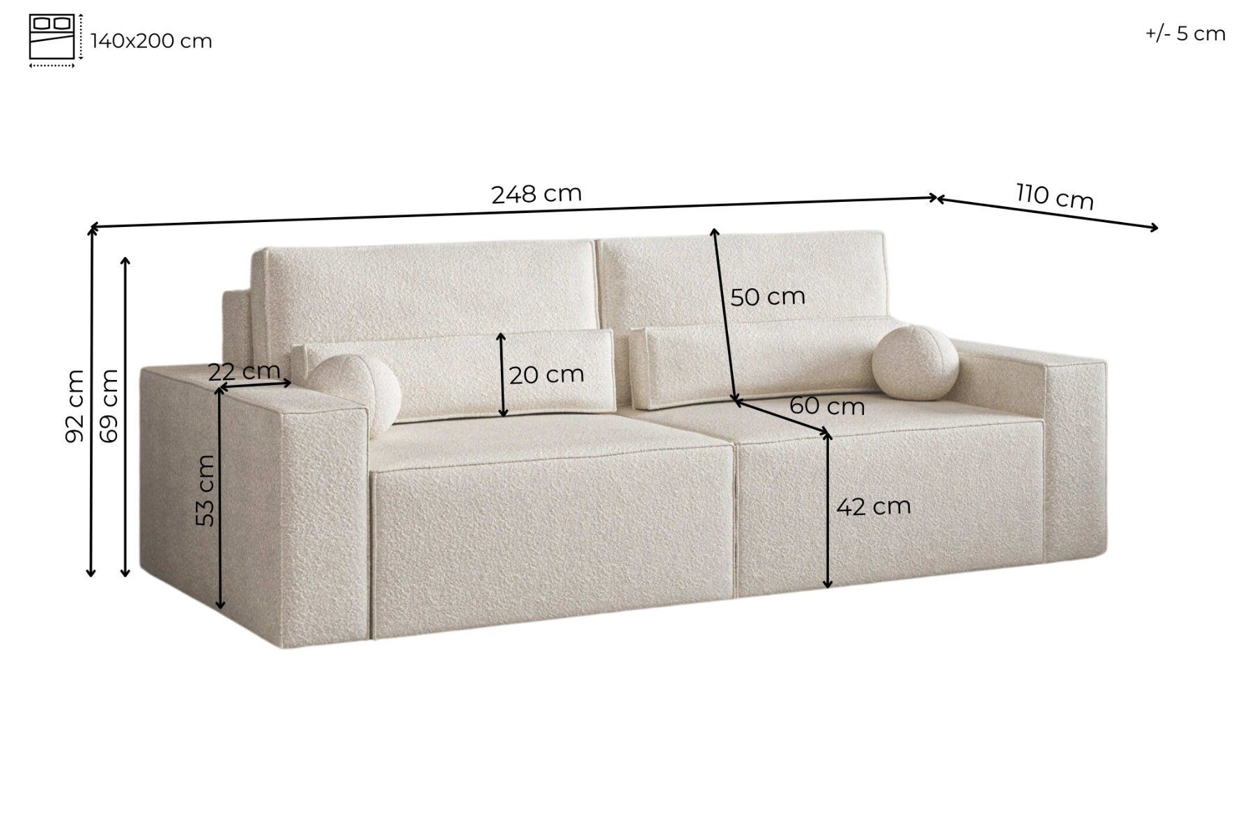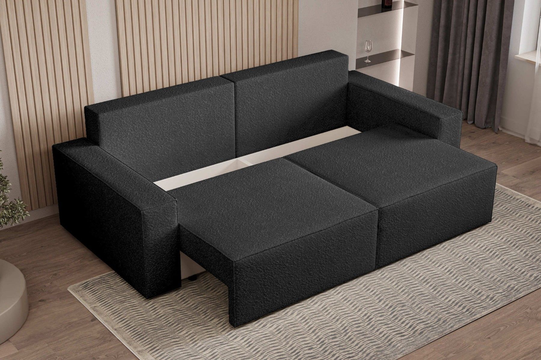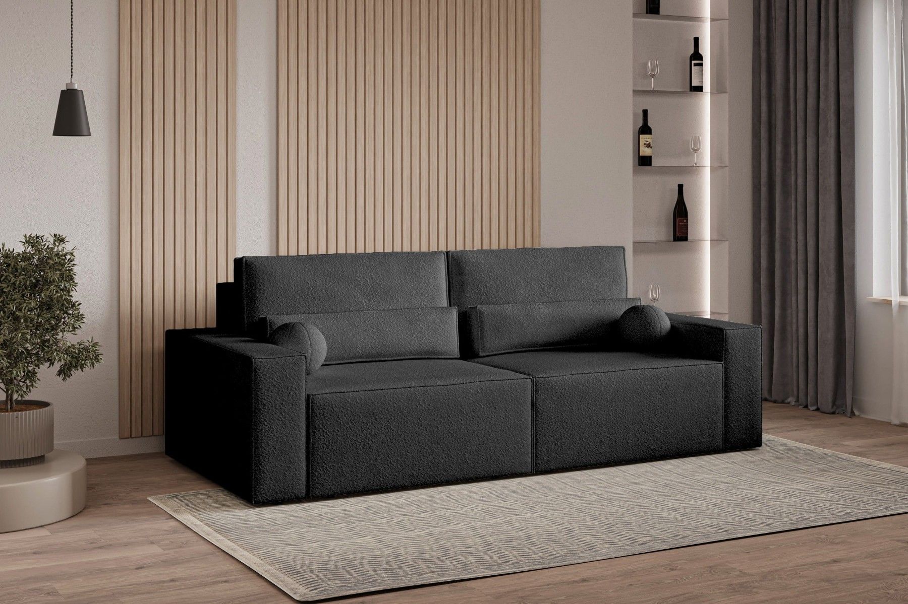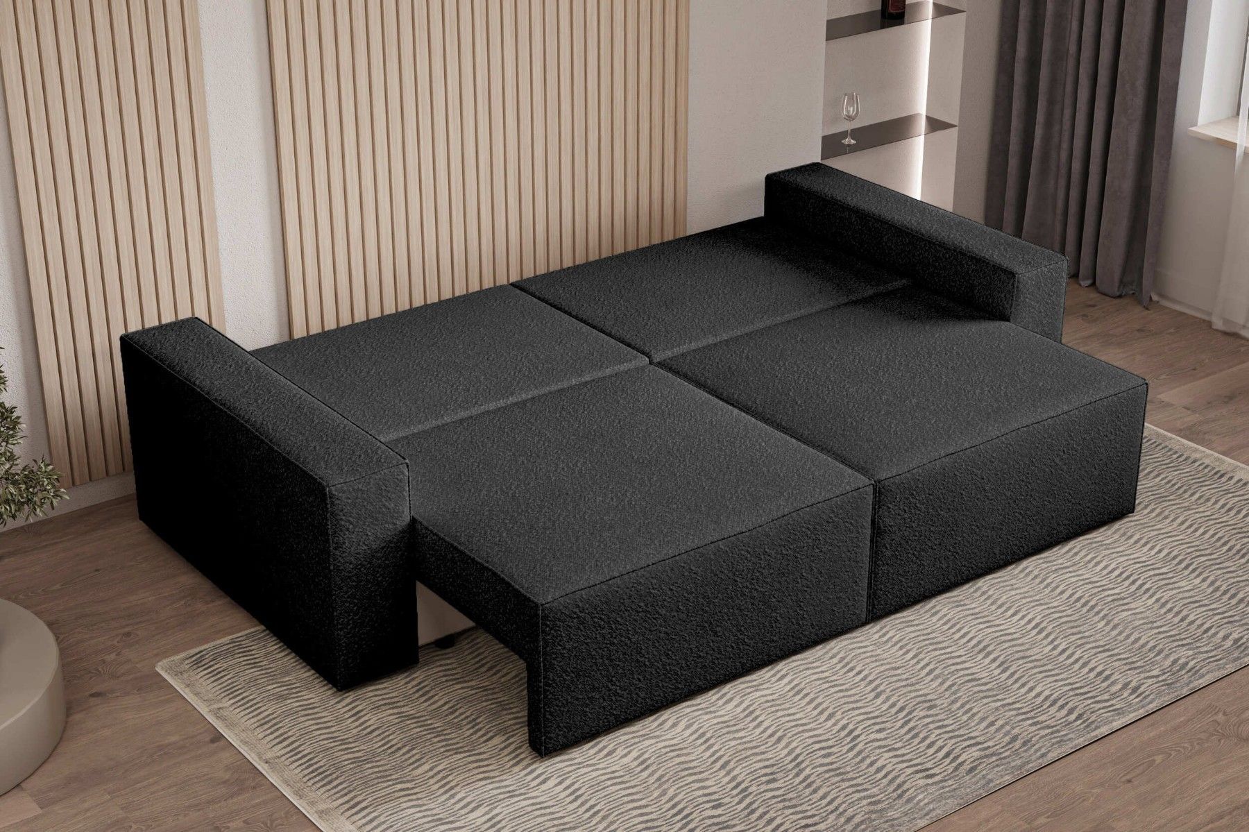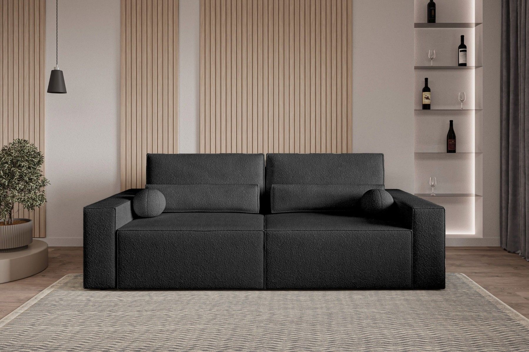 Schlafsofa DENVER Beige Polstersofa aus Bouclé Sofa mit Schlaffunktion und Bettkasten