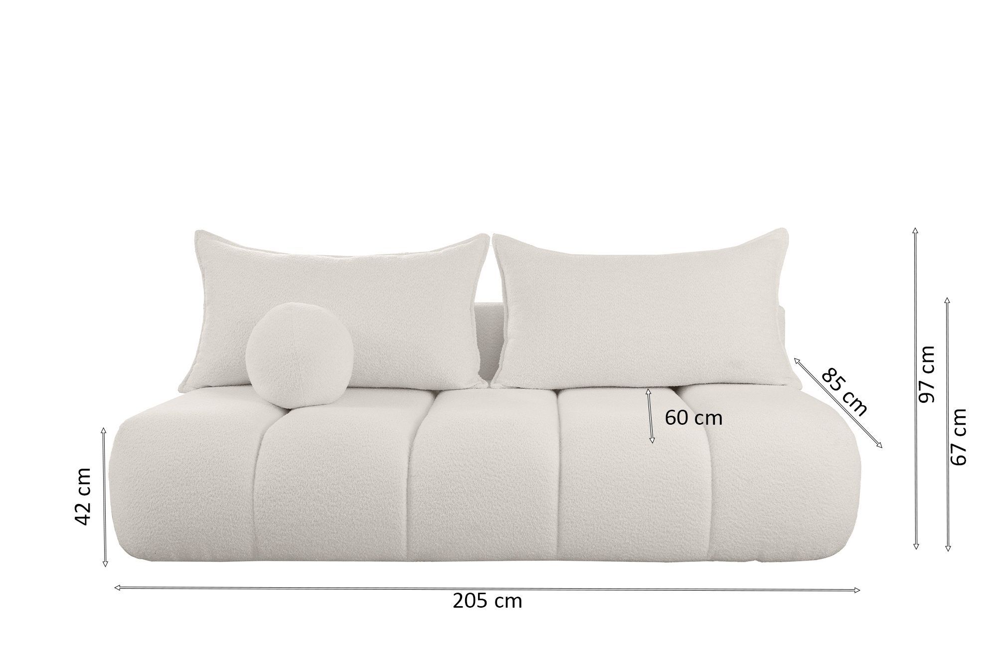 Schlafsofa Designersofa Sofa 3-Sitzer ANZIA in Stoff Ascot Bukla Beige