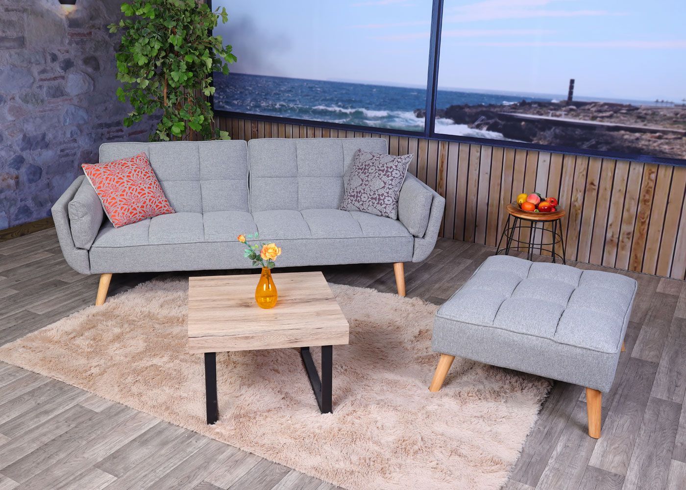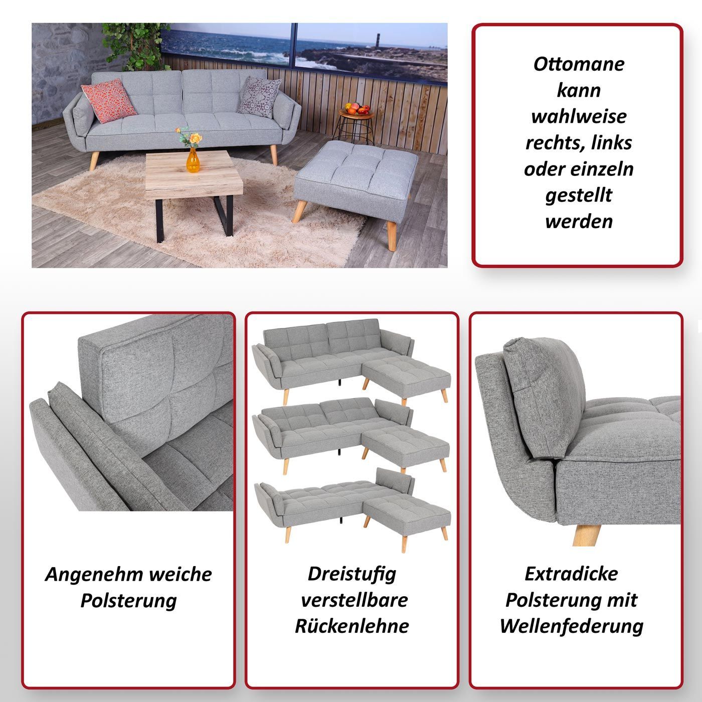 Mendler Schlafsofa HWC-K18 mit Ottomane, Couch Sofa Gästebett, Schlaffunktion 218x175cm