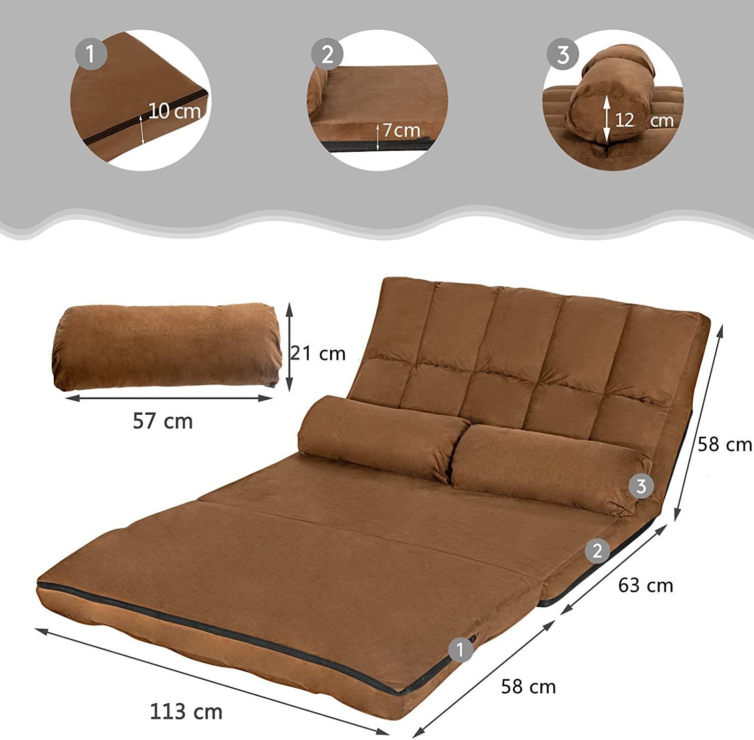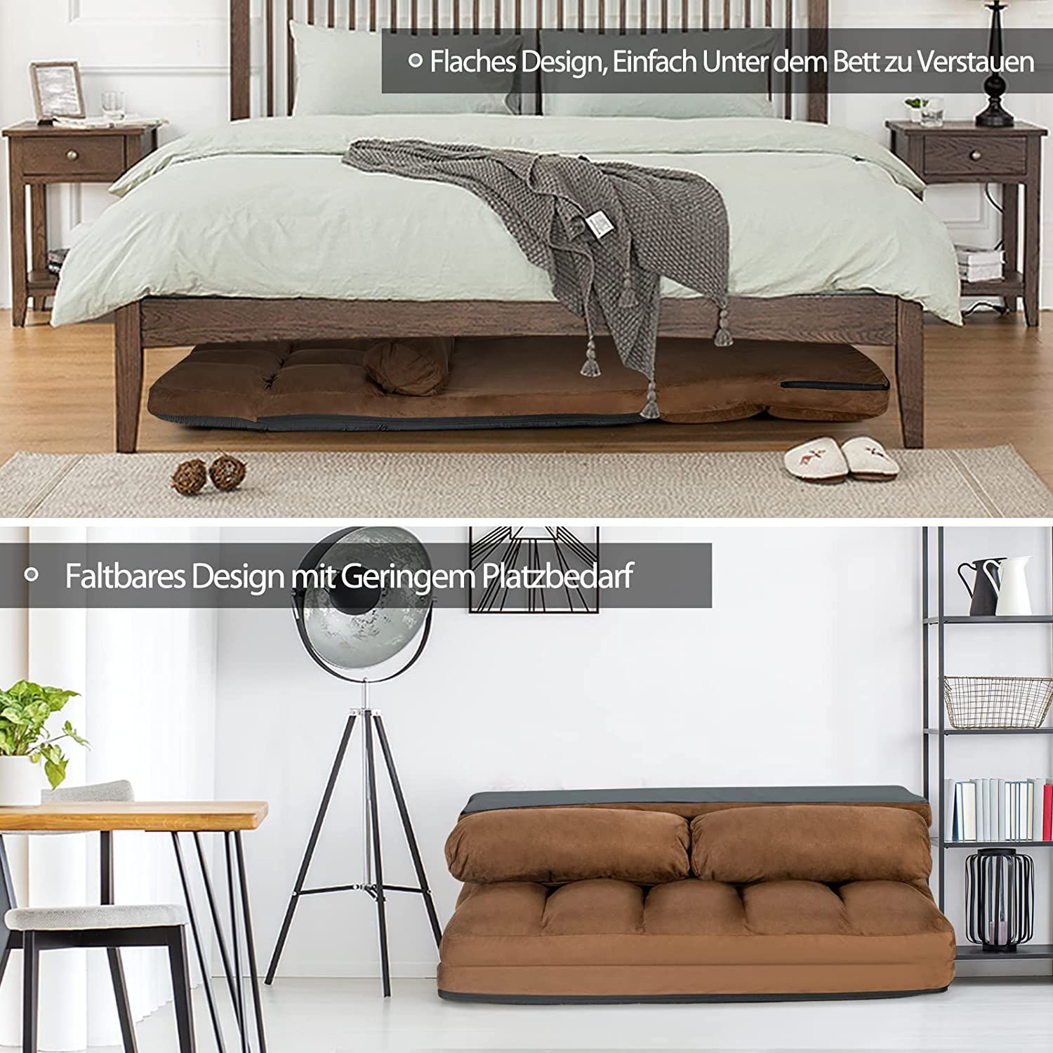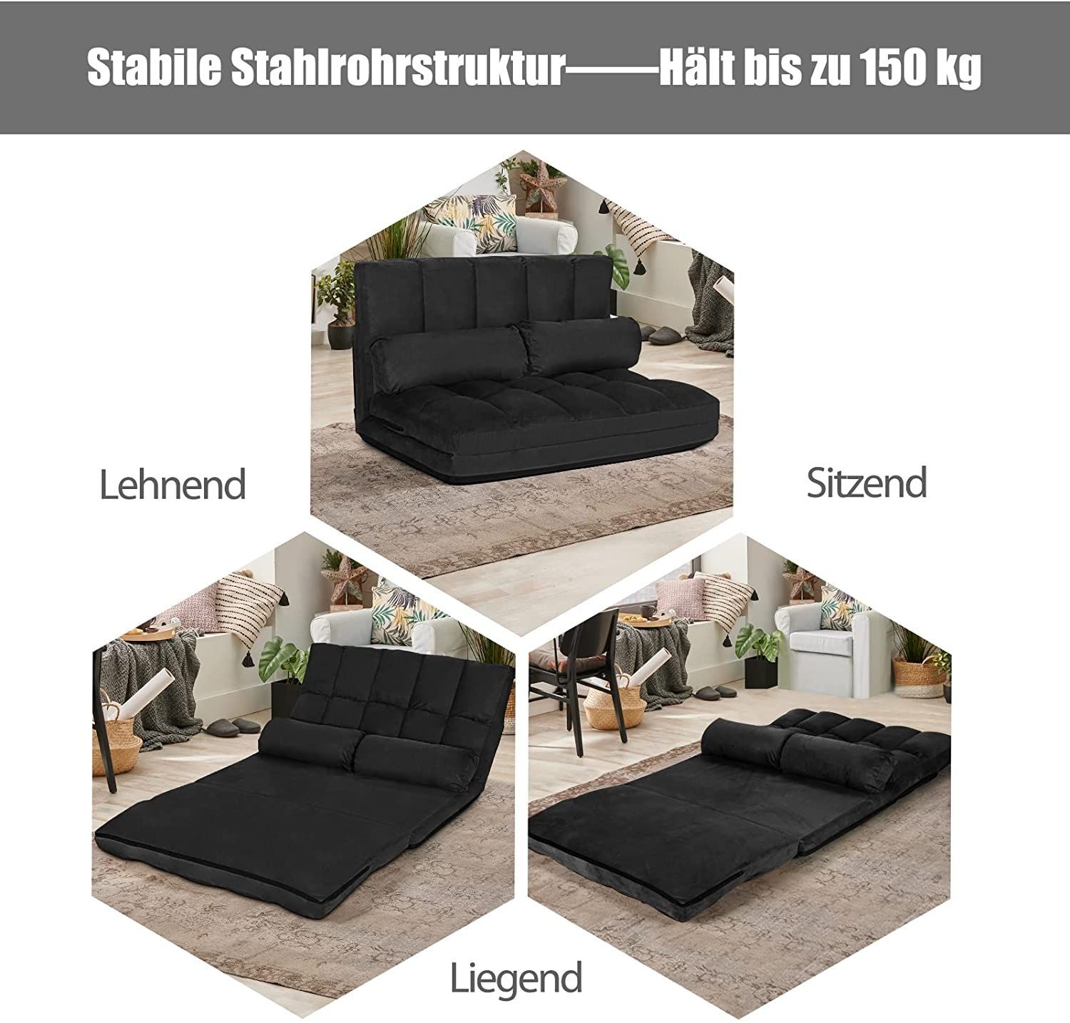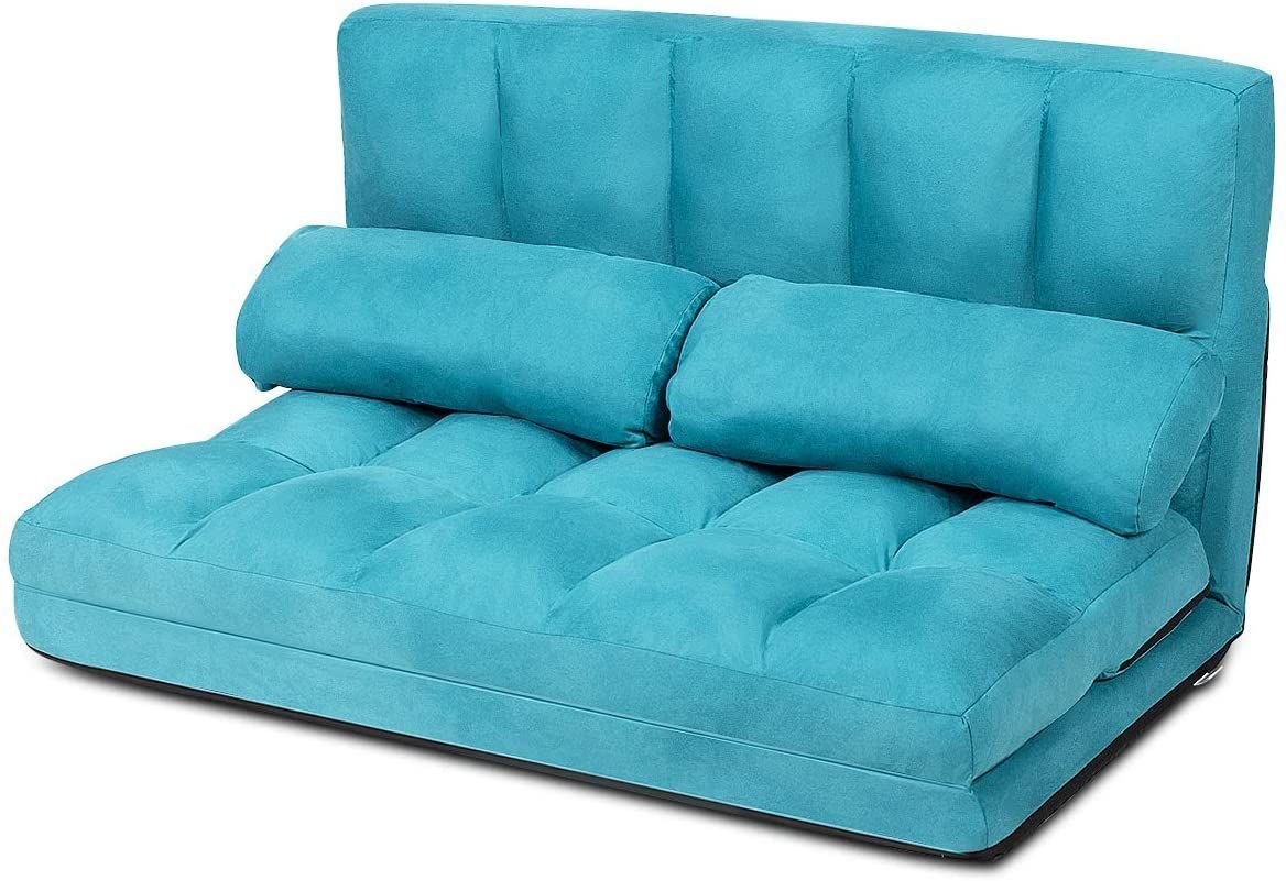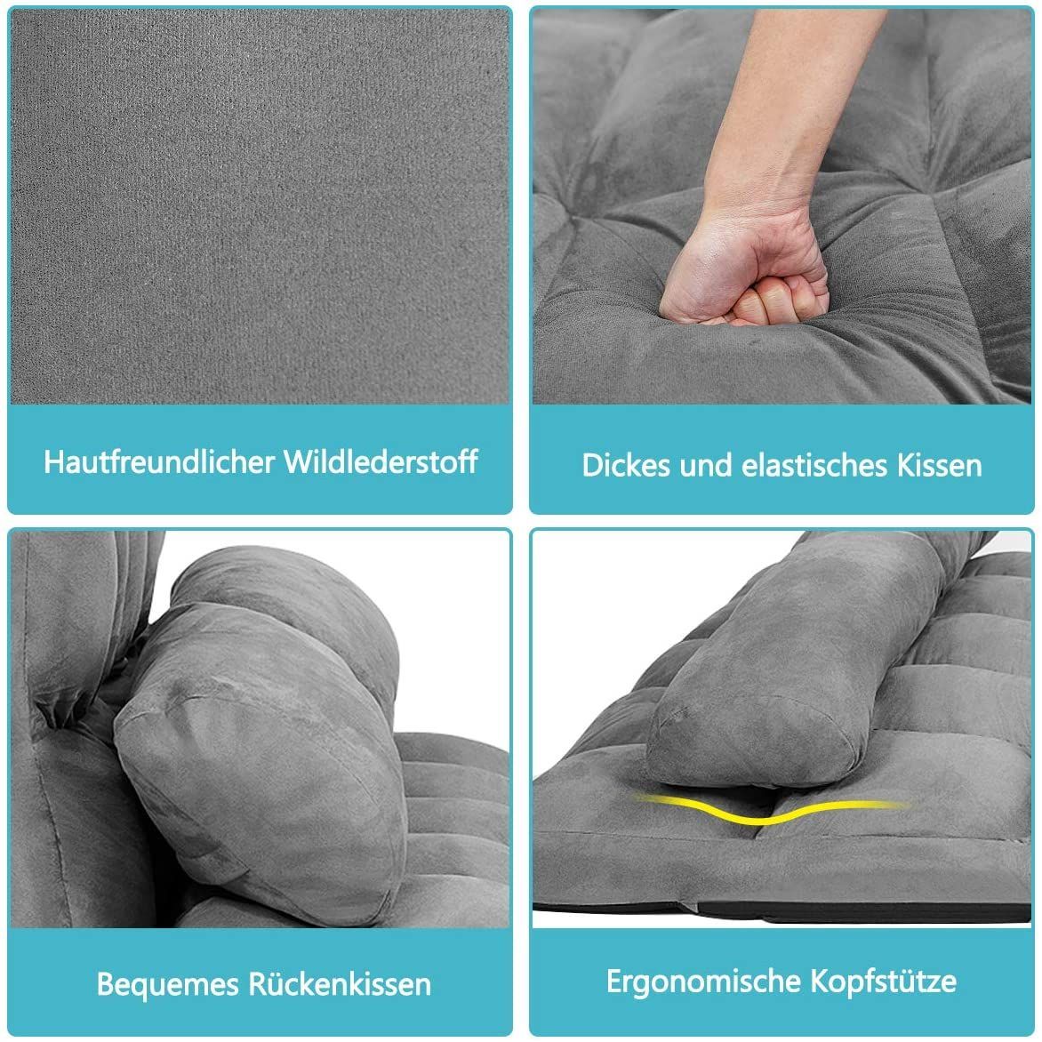 Schlafsofa mit 2 Kissen Sofabett 6 stufig Verstellbarer Rücklehne, Lazy Sofa klappbar