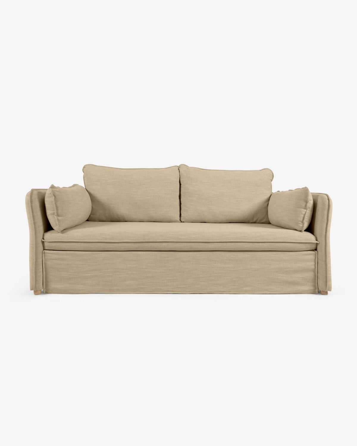 Schlafsofa Tanit beige und Beine aus Buchenholz 210 cm