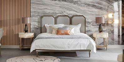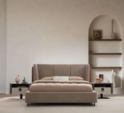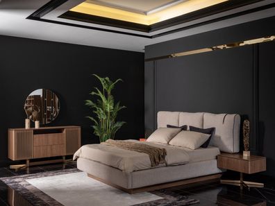 Luxus Bett mit Nachttischen Loft Schlafzimmer Möbel Betten Sets Gepolstert