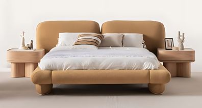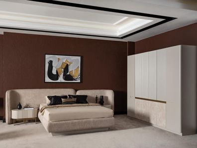 Modern Beigefarbene Holz-Möbelset für Schlafzimmer mit Bett