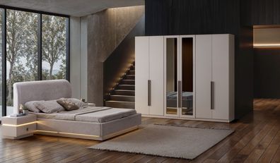 Komplettes Schlafzimmer Set modern Bett Kleiderschrank Nachttische