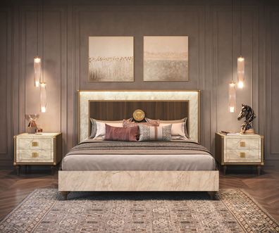 Luxus Bett Nachttisch Betten Doppel Bettgestell Garitur Set 3tlg. Schlafzimmer