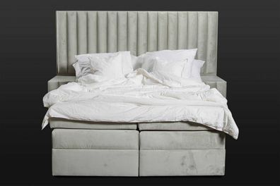 Schlafzimmer Set Bett Nachttisch 3 tlg Design Modern Luxus Betten Grau