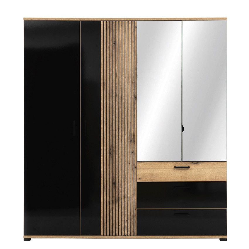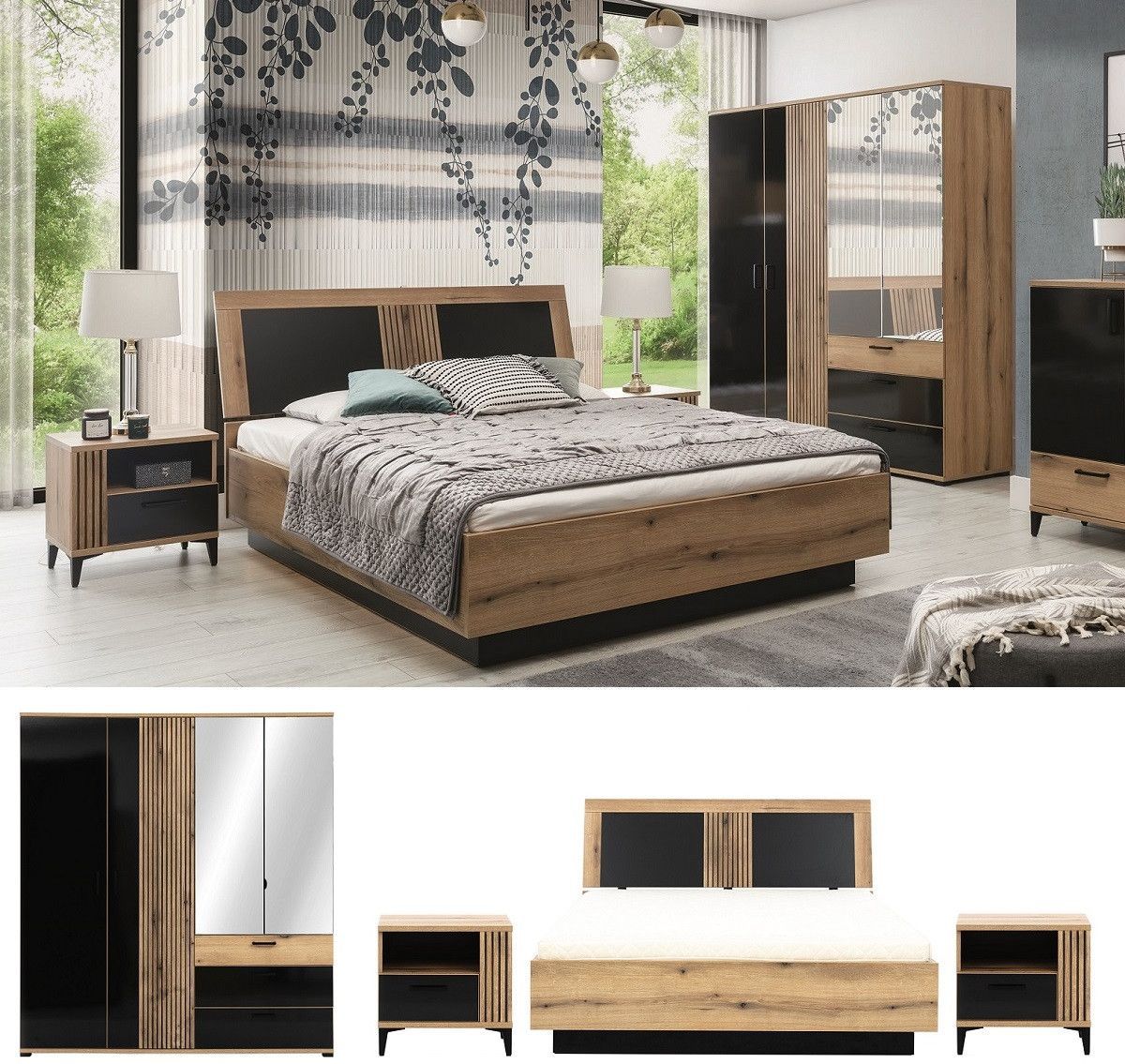 Schlafzimmer komplett ARIA Set A Schrank Bett eiche schwarz hochglanz