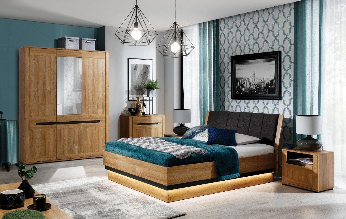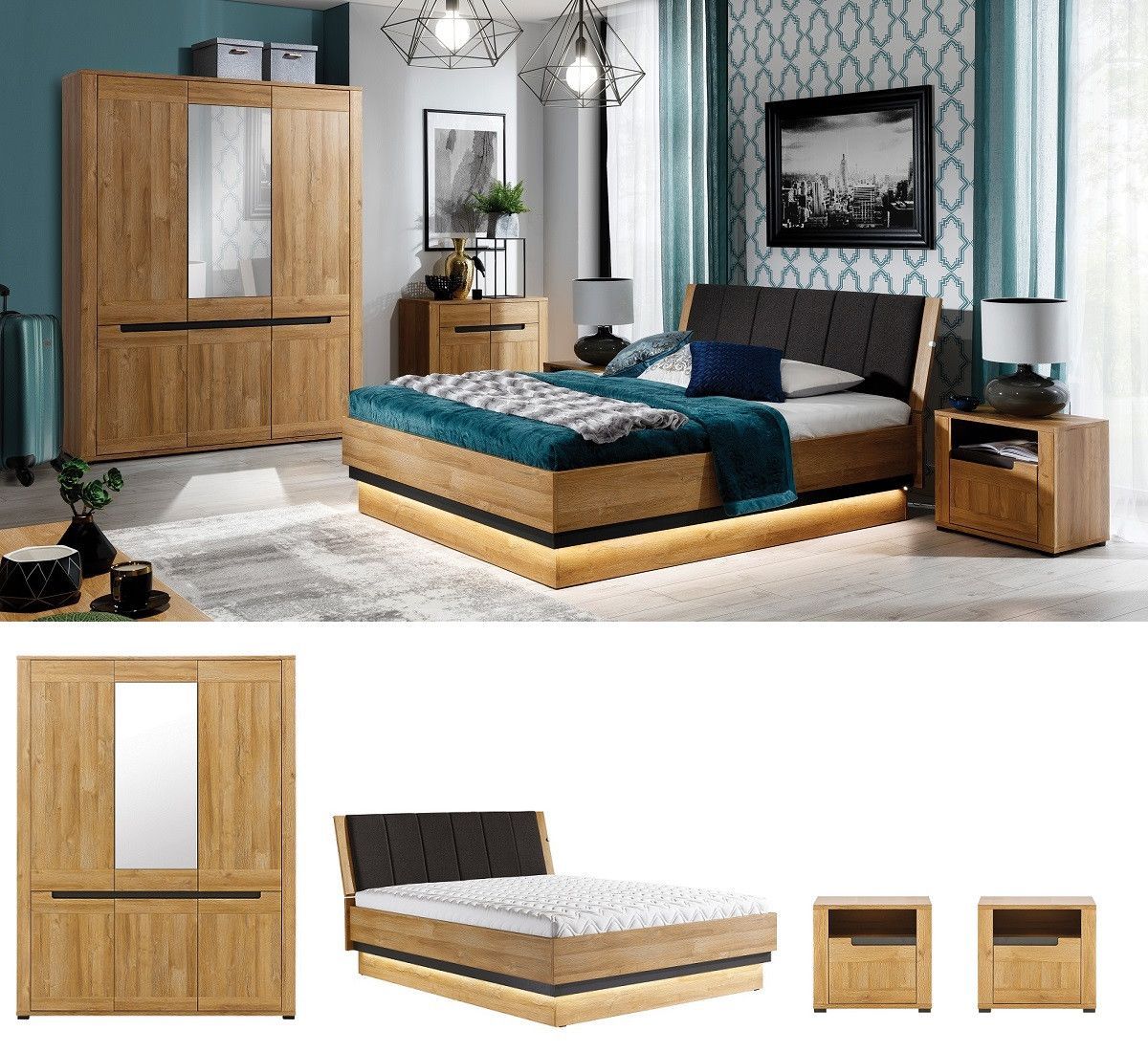 Schlafzimmer komplett eiche JORCK Set A Schrank Bett Nachttische Kommode