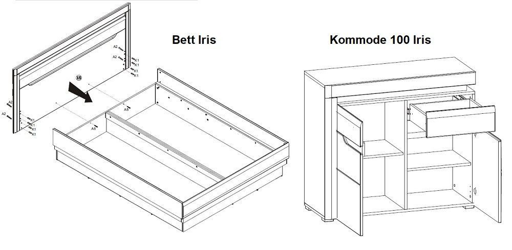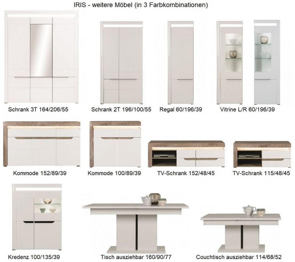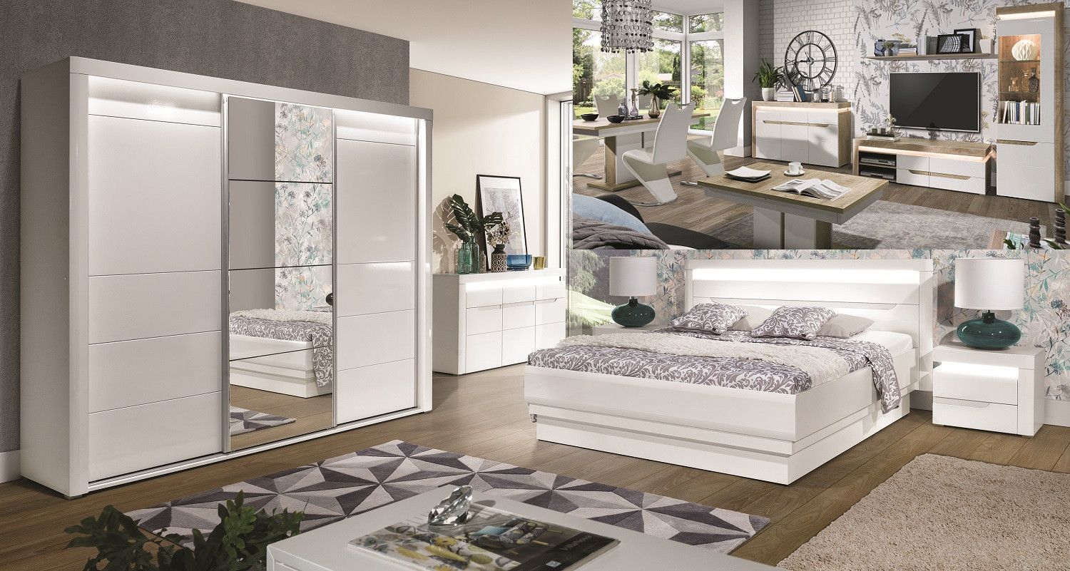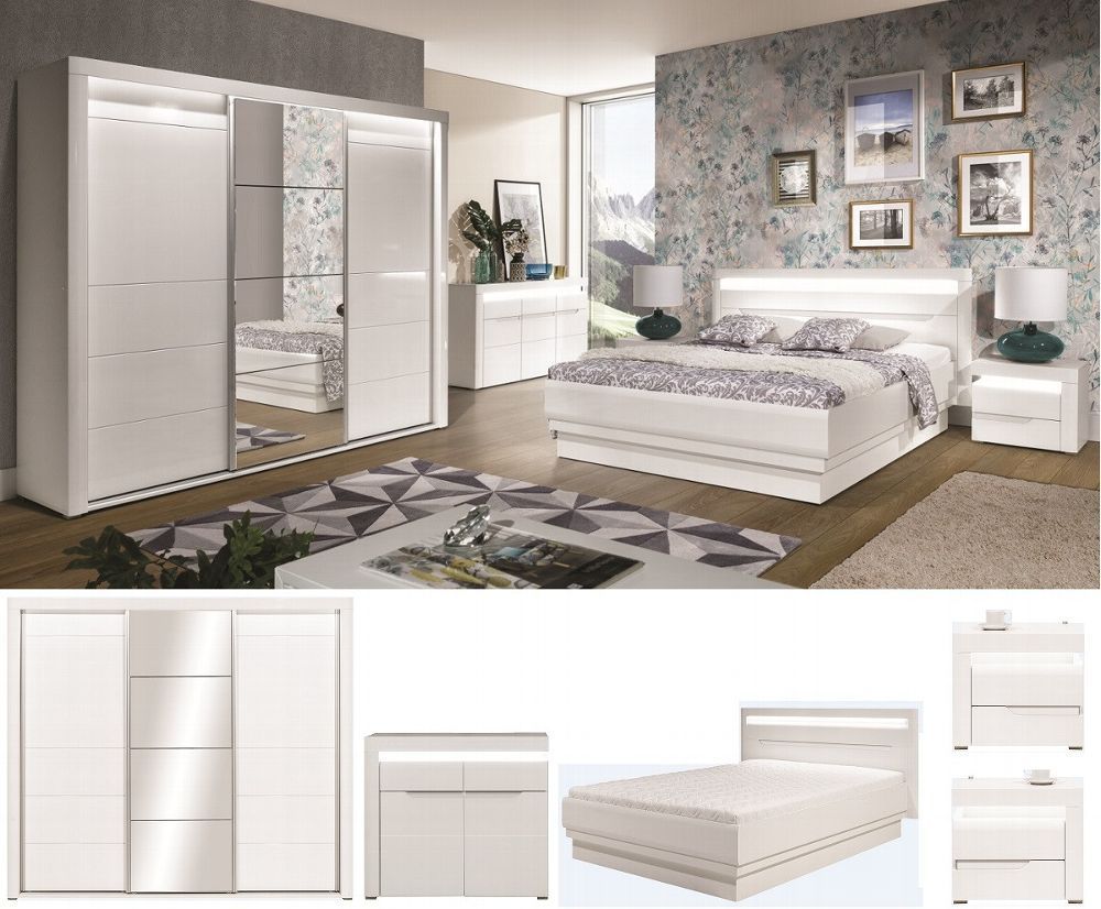 Schlafzimmer komplett weiß hochglanz IRIS Set B Schwebetürenschrank Nakos Kommode