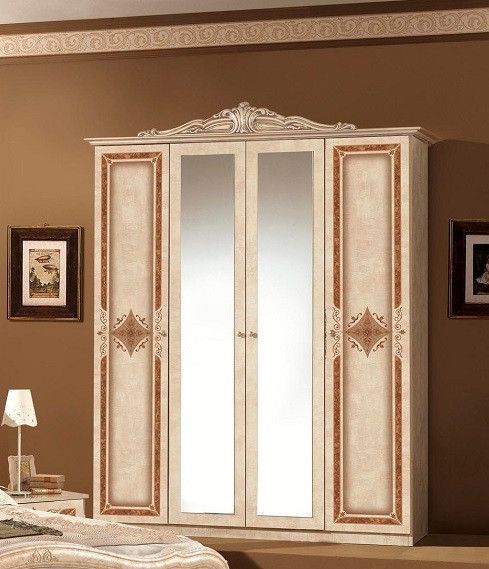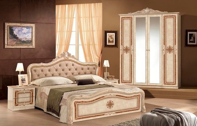 Schlafzimmer Lucy in beige Barock 180x200 cm mit Schrank 4 türig