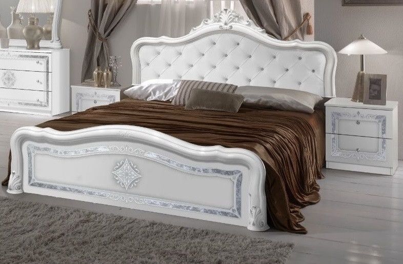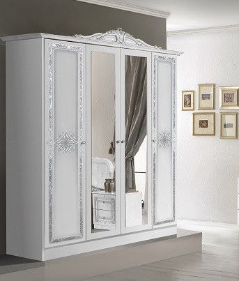 Schlafzimmer Lucy in weiss silber 160x200 cm mit Schrank 4 türig