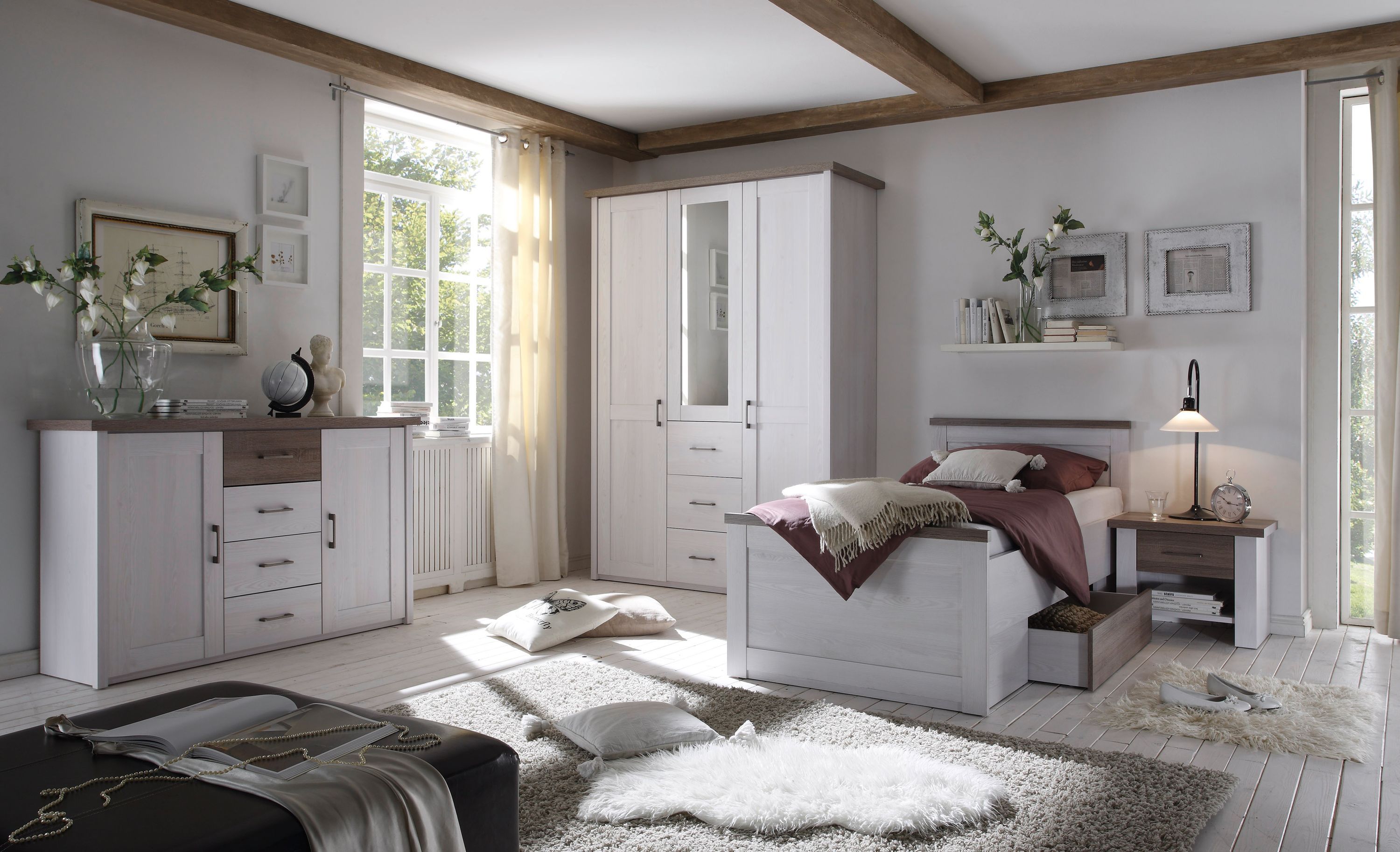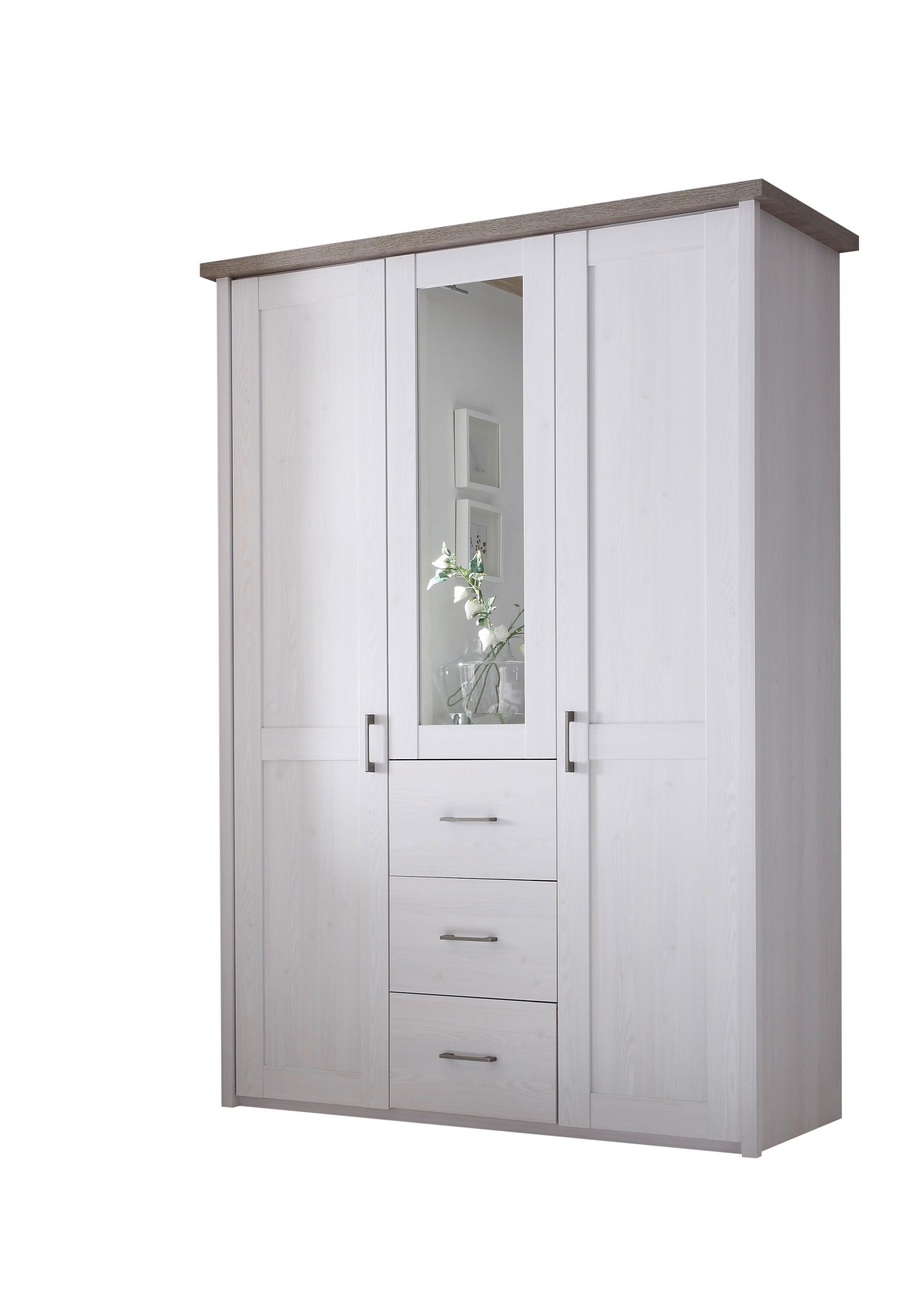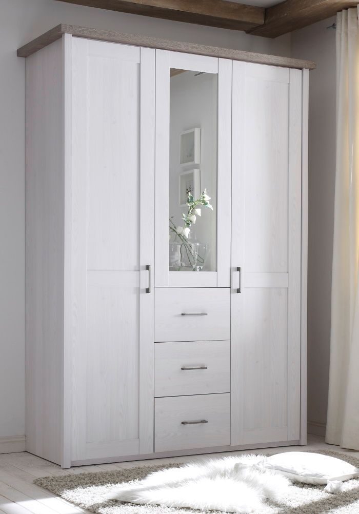 Schlafzimmer-Schrank Kleiderschrank aus Pinie weiß trüffel