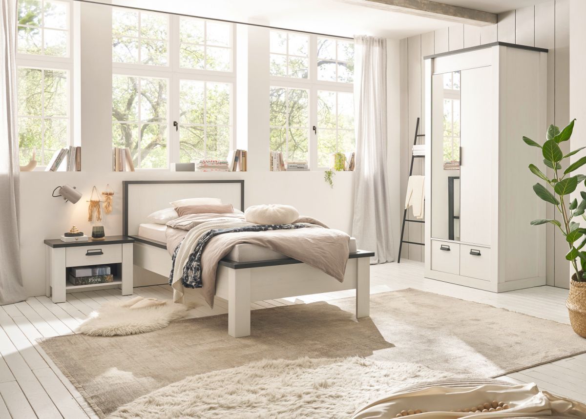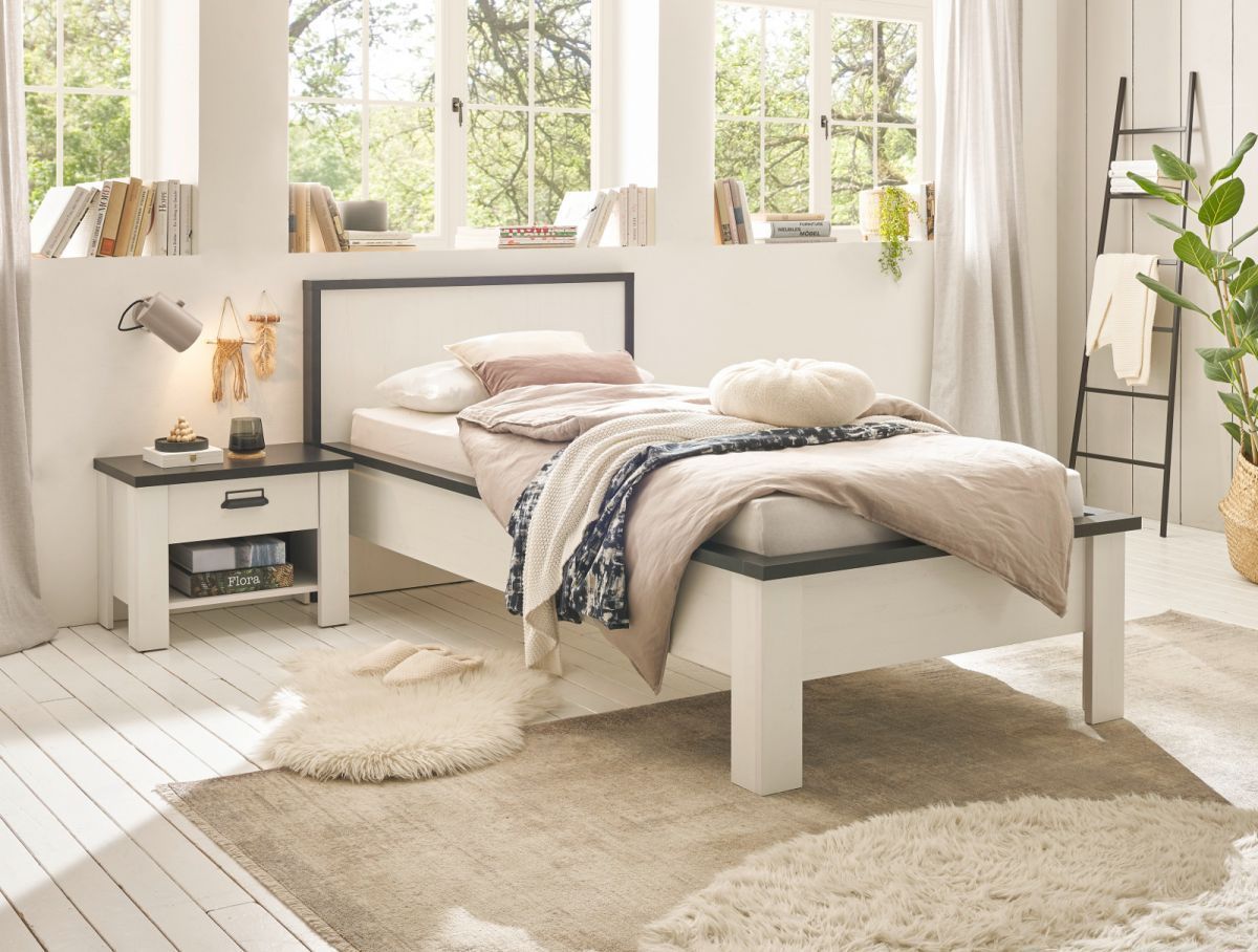 Schlafzimmer Set 2-tlg. weiß Landhaus Bett Liegefläche 90 x 200 und Nachttisch Stove