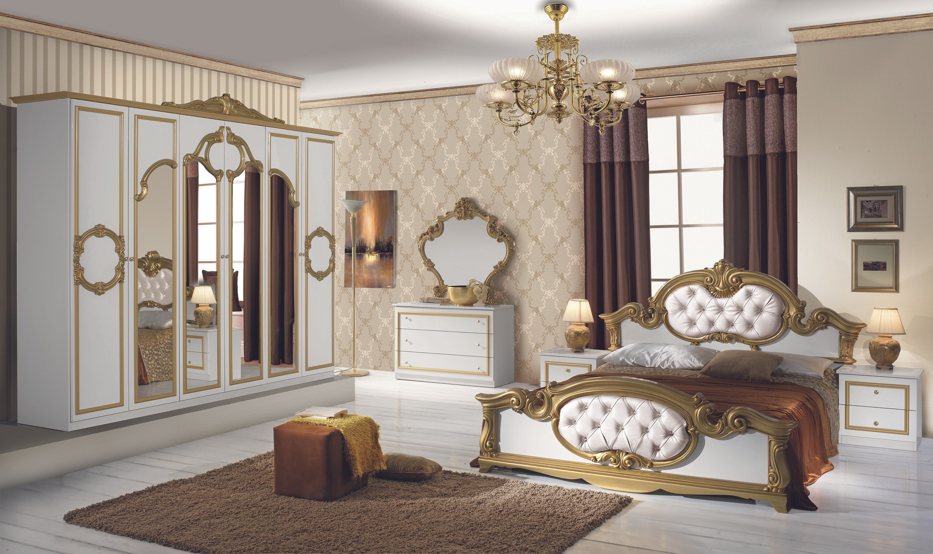 Schlafzimmer Set Barokko in Weiss/Gold 4-Teilig