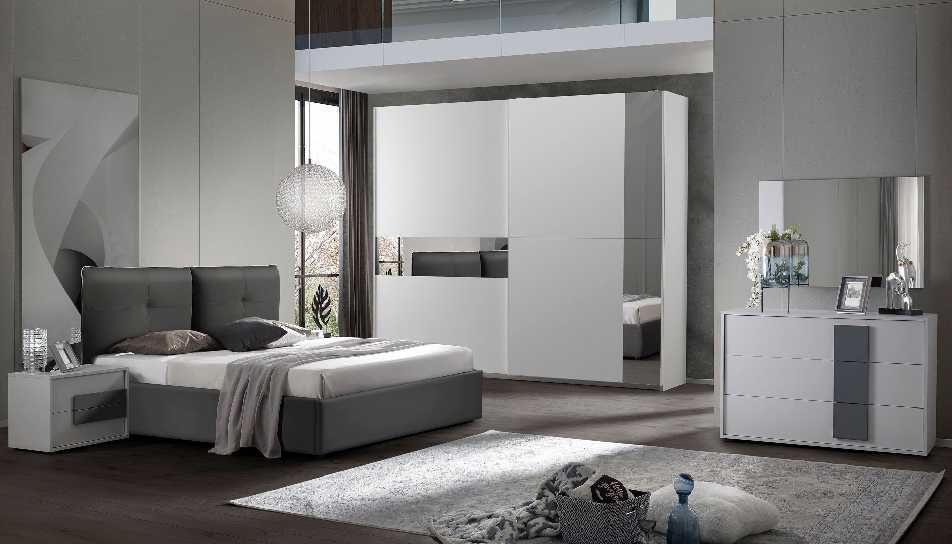 Schlafzimmer-Set Blossom 6-Teilig in Weiß/Grau