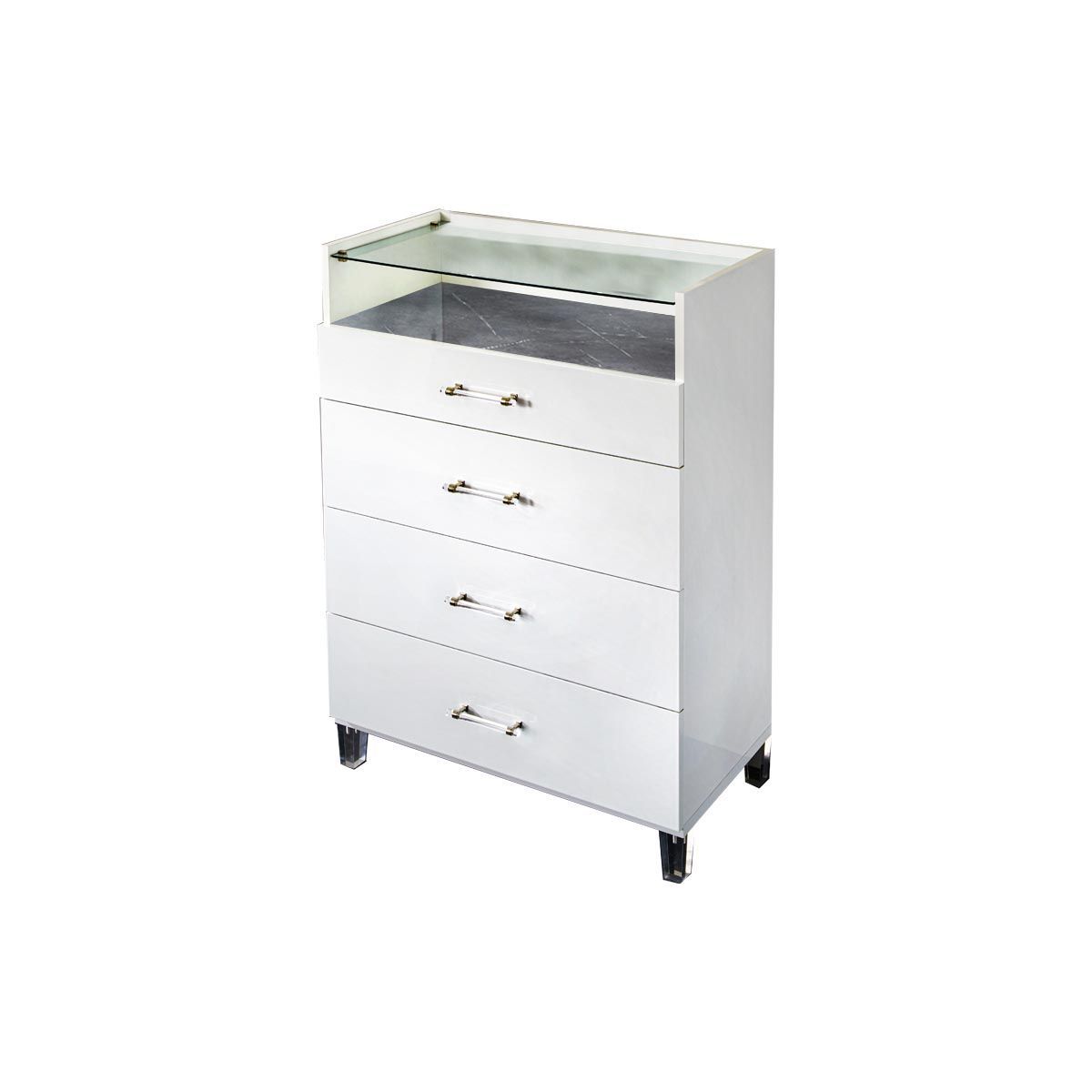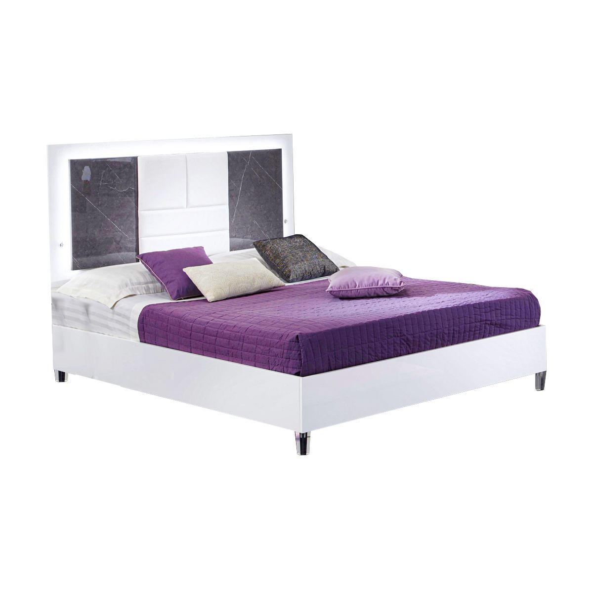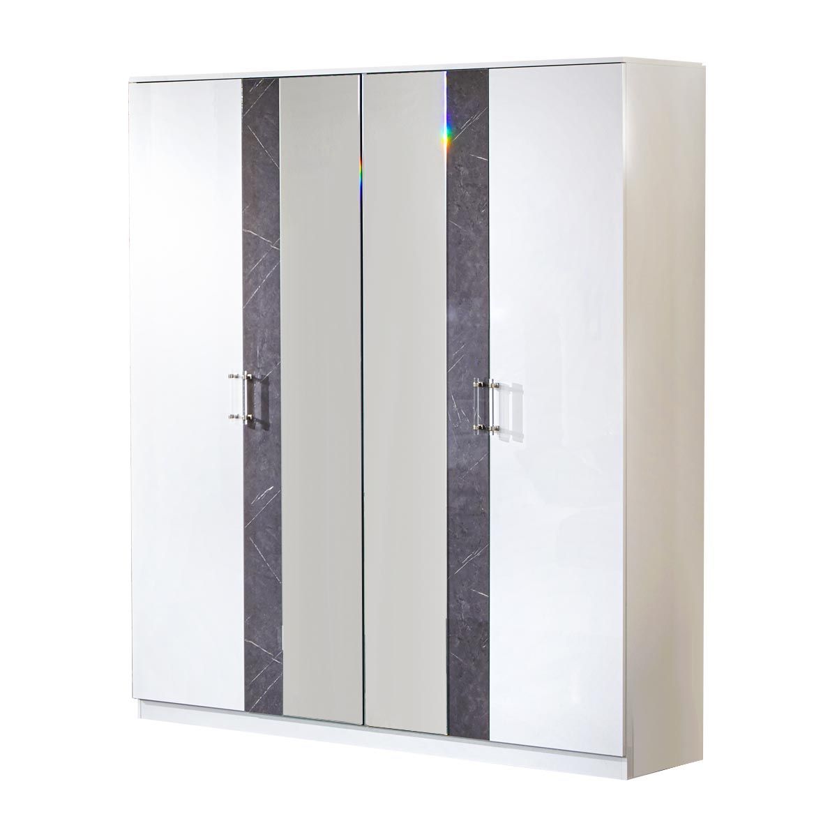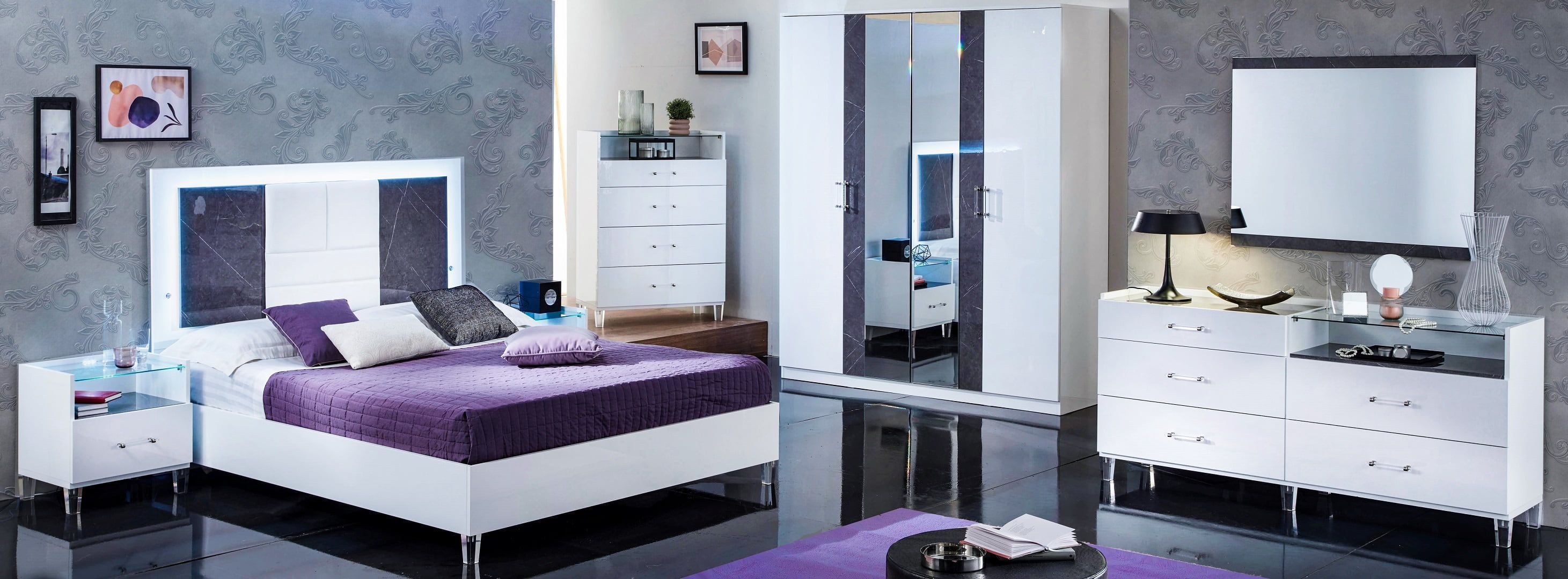 Schlafzimmer-Set Christa 6-Teilig in Weiß/Grau Marmoroptik