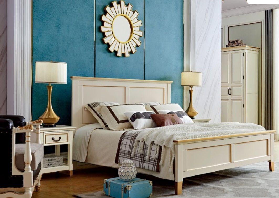 Schlafzimmer Set Design Bett+2x Nachttische Möbel Komplett Holz Kleiderschrank