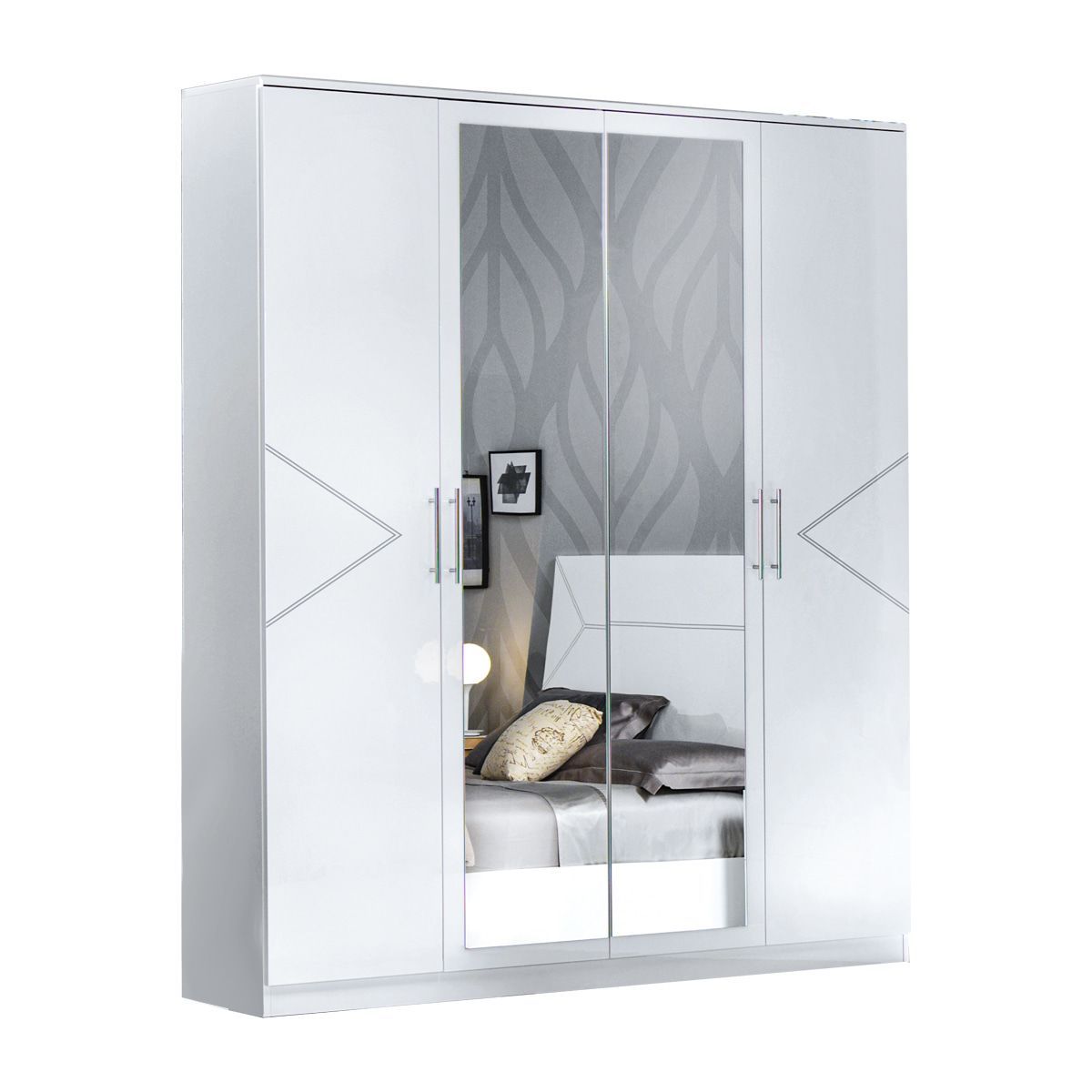 Schlafzimmer-Set Eleganza 6-Teilig in Weiß/Silber Hochglanz