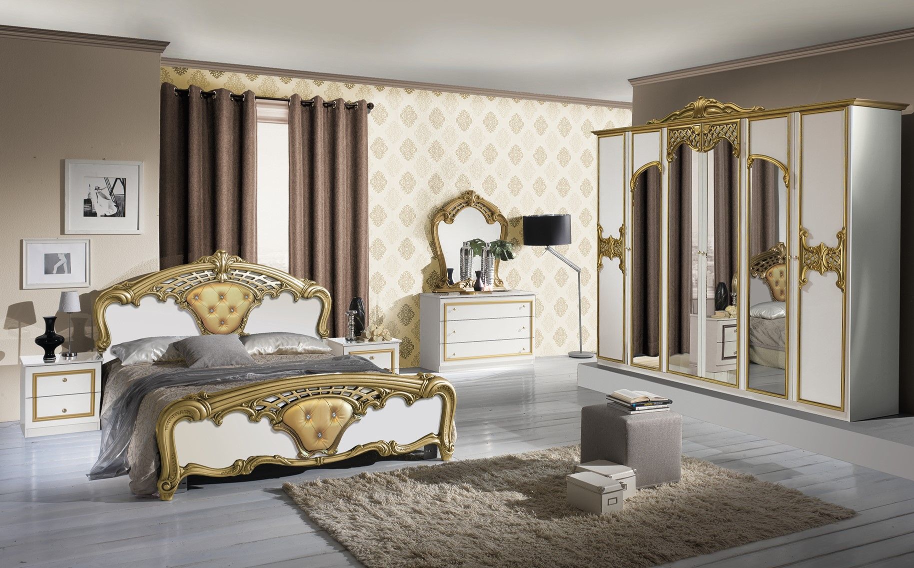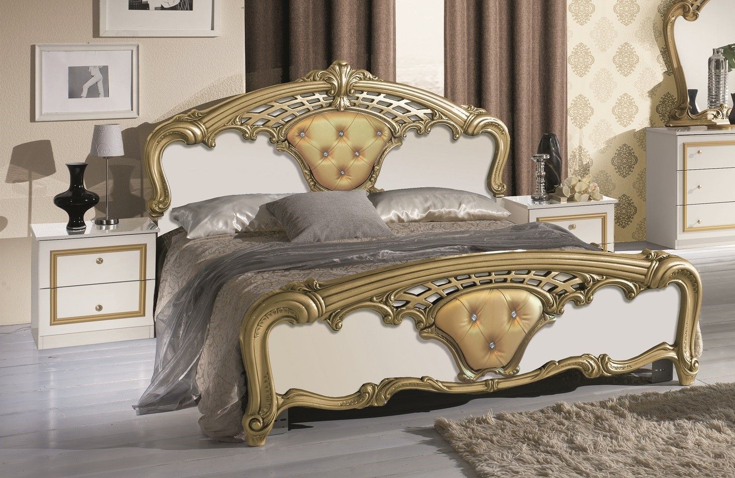 Schlafzimmer-Set Eva italienischer Stil ? 6-teilig Weiß/Gold