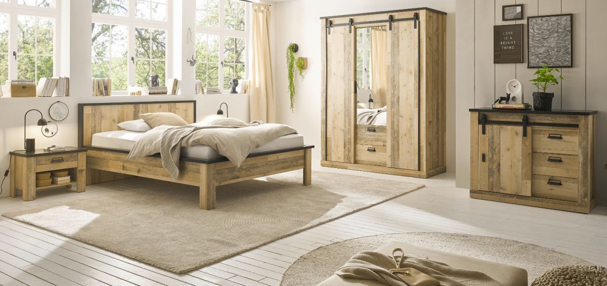 Schlafzimmer Set komplett mit Bett Schrank Kommode 2 x Nachttisch in Used Wood Stove