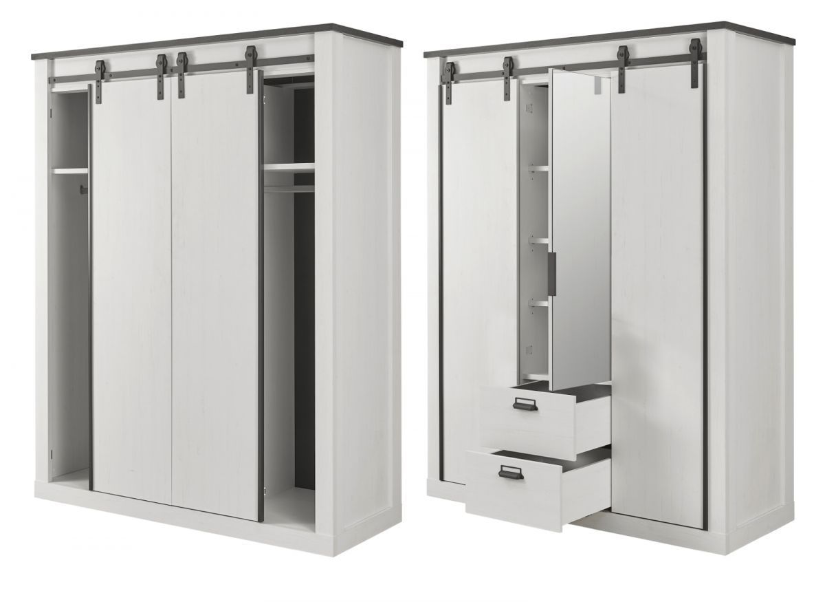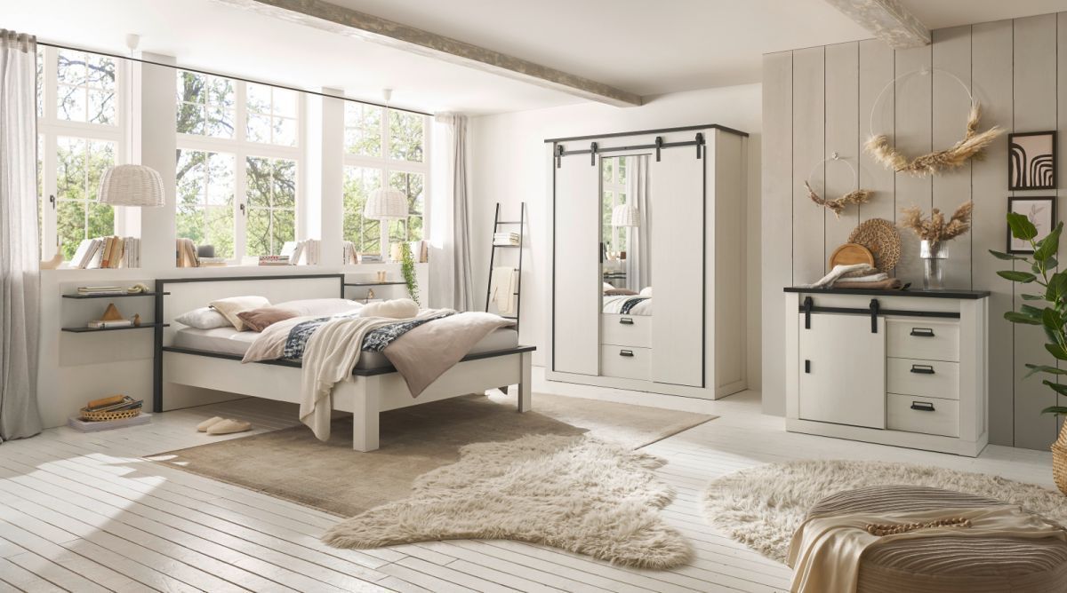 Schlafzimmer Set komplett mit Bett Schrank Kommode 2 x Wandpaneel weiß Landhaus Stove