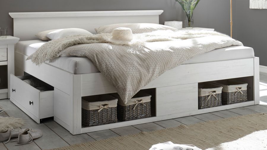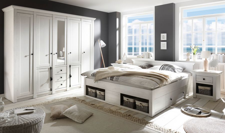 Schlafzimmer Set komplett Pinie weiß Landhaus Bett Schrank 2 x Nachttisch Hooge