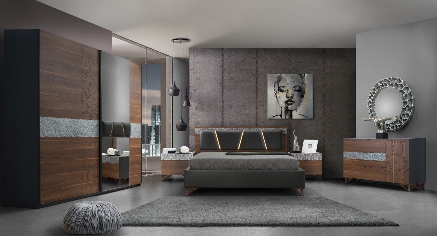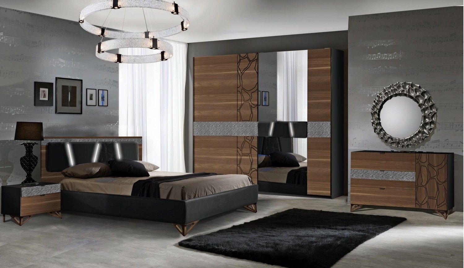 Schlafzimmer Set Mercury in Schwarz / Walnuss 160x200 cm / mit Lattenrost 26 Leisten