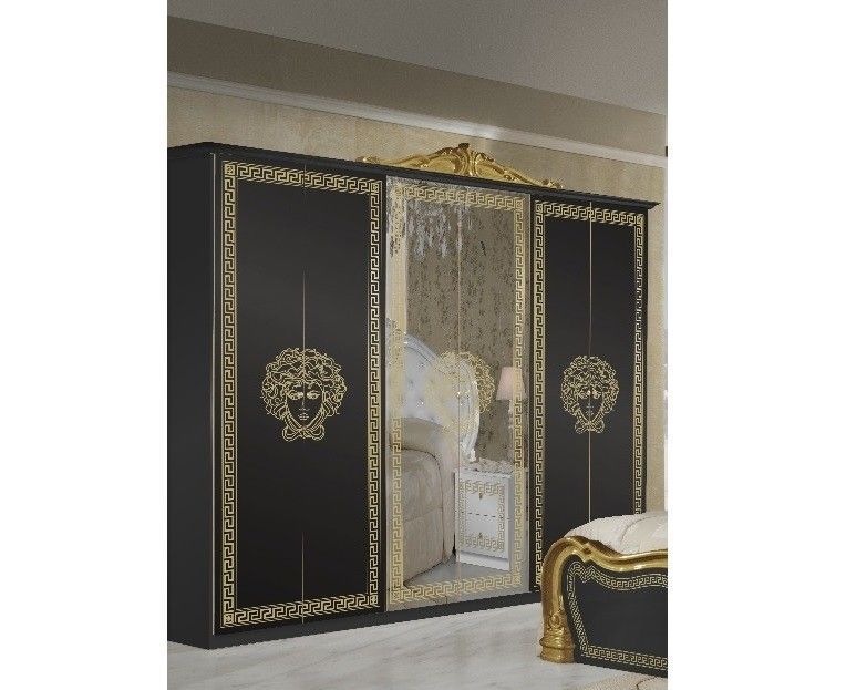 Im Angebot enthalten: Das Schlafzimmer Vilma im klassischen Design 1x Doppelbett mit aufwändig gearbeiteten Kopf- und Fußteil in hochglanz Liegefläche 160x200 cm [Maße ca.: B H L: 188 x 130 x 212 cm] Strasssteine am Kopfteil Polsterung mit Kunstlederbezug am Kopfteil mit Verstärkungs-Metallstangen D