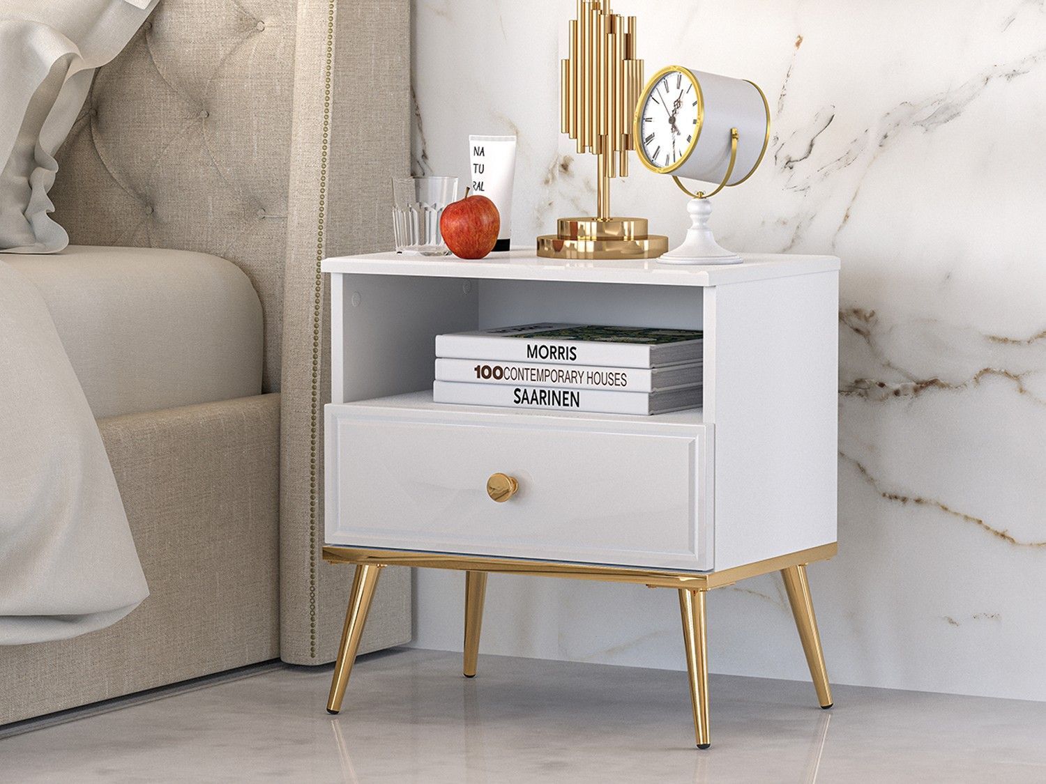 Schlafzimmermöbel Nachttisch Glamour Style Goldin 07 Beine