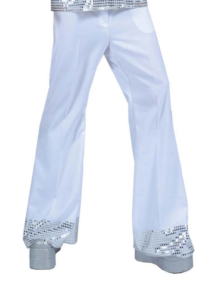 Schlaghose Herren Pailletten weiß Material: 100% Polyester Lieferumfang: Eine Hose Weiteres Zubehör ist nicht im Lieferumfang enthalten. Achtung: Dies ist kein Spielzeug! Nicht für Kinder unter 14 Jahre geeignet. Von Feuer fernhalten.