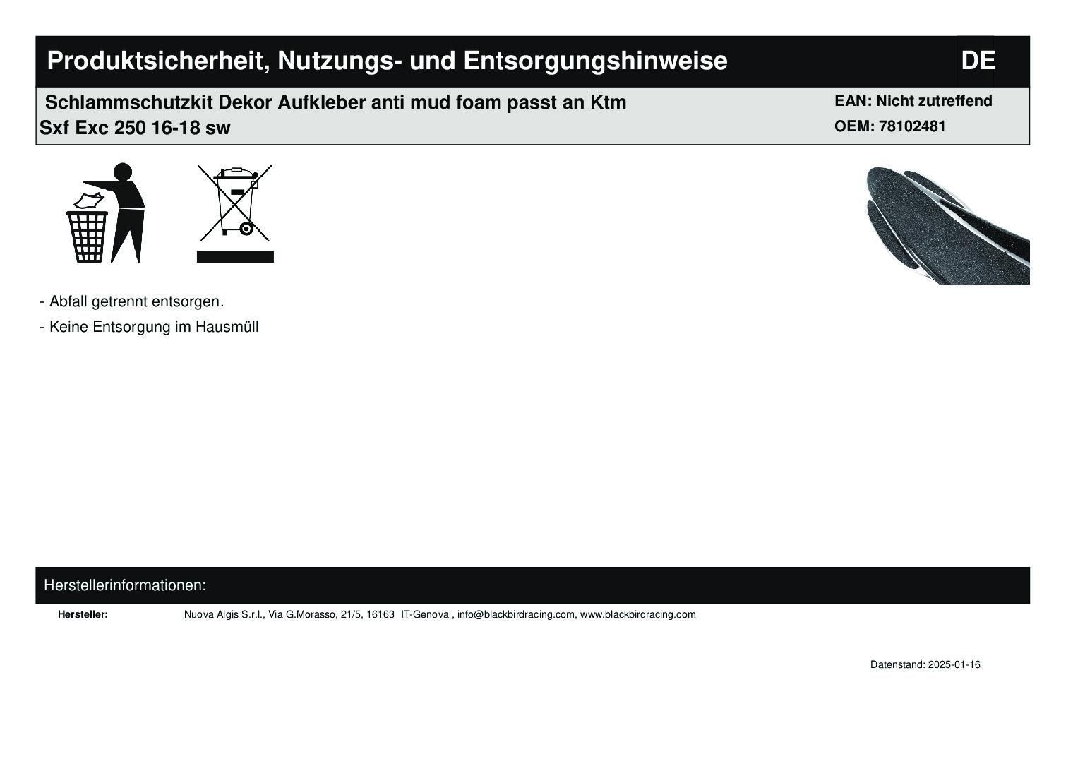 Schlammschutzkit Dekor Aufkleber anti mud foam passt an Ktm Sxf Exc 250 16-18 sw In dieser Auktion gibt es folgenden Artikel zu kaufen: Schlammschutz Kit (siehe Foto) Modell: passend für Ktm SX, SXF 125 - 450 Bj.: 16 - 18 EXC 125 - 500 Bj.: 17 - 18 Lieferumfang: siehe Foto Artikelzustand: neu Es han