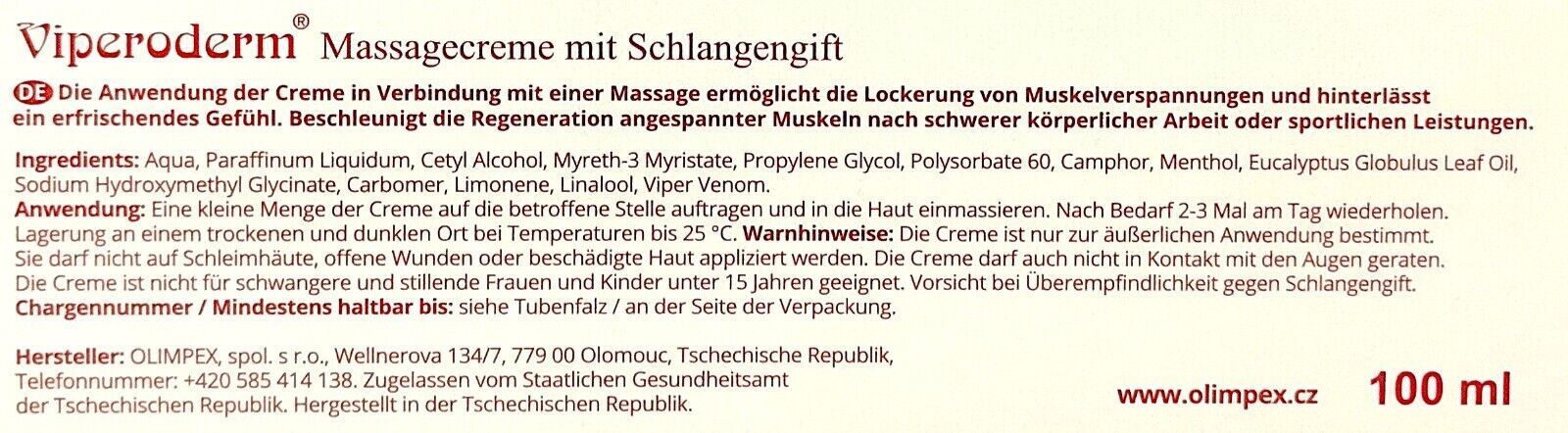 Schlangengift Creme Viperoderm Massagecreme mit Schlangengift