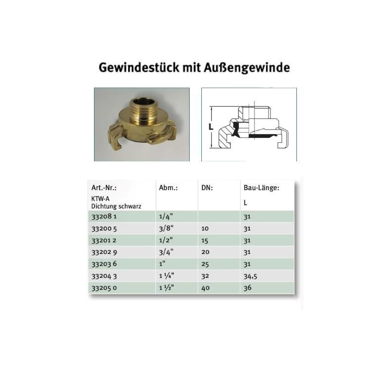 • Schnellkupplung aus Messing • inkl. Dichtung NBR • Trinkwasser geeignet • Gewindestück mit AG 1 1/2"