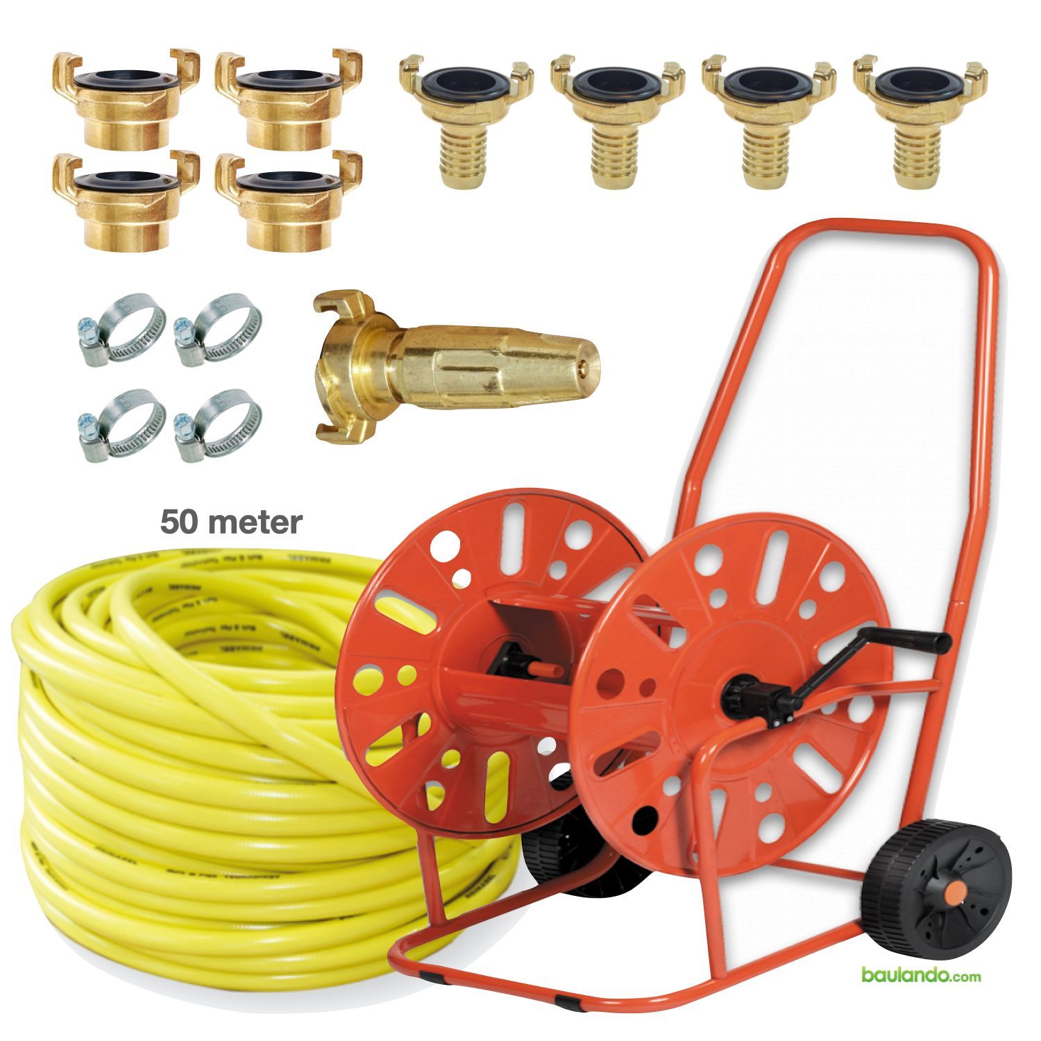 Schlauchwagen Professional, 50m 3/4" Schlauch + Spritzdüse, Anschlüße