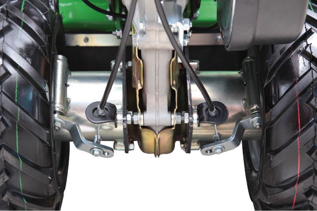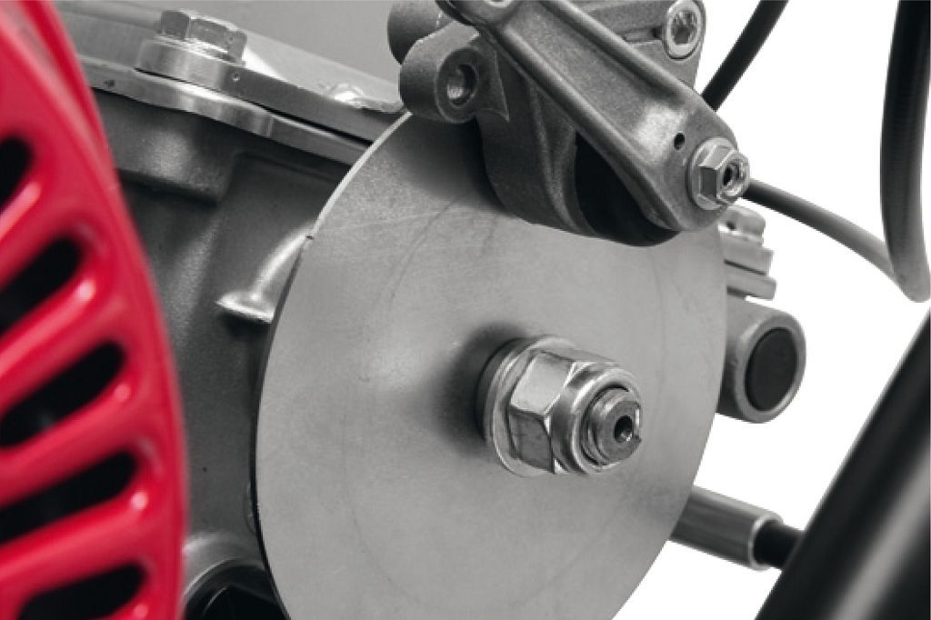 Motor Honda GX200 (5,5 PS) Getriebe 3-Gang 2V-1R Achse starr Kupplung unabhängig je Vortrieb und Mähwerk Bremse automatisch beim Auskuppeln Lenker nur in der Höhe regulierbar Reifen 13x500-6 Arbeitsbreite 60 cm Y-Messer 32 Schnitthöhe 20-80 mm über Kurbel stufenlos einstellbar Gewicht 120 kg