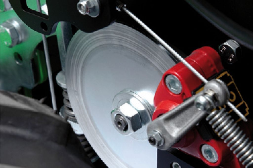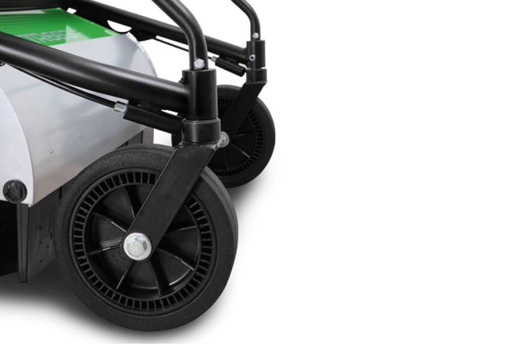Motoren 8,4 PS Honda GX270 11,7 PS Honda GX390 Getriebe 3-Gang 2V-1R Achse Freilauf und Lenkbremse Kupplung unabhängig je Vortrieb und Mähwerk Bremse automatisch beim Auskuppeln Lenker in der Höhe und seitlich regulierbar Reifen Kettenantrieb Arbeitsbreite 75 cm Y-Messer 40 Schnitthöhe 20-80 mm über