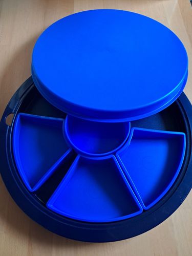 Ich biete hier diese große Schlemmerrunde von Tupperware. Zubehör wie auf dem Bild zu sehen, 4 Schälchen, Tablett, Deckel. Die Schlemmerrunde ist gebraucht, aber in gutem Zustand. Danke fürs Anschauen, hab noch mehr eingestellt!