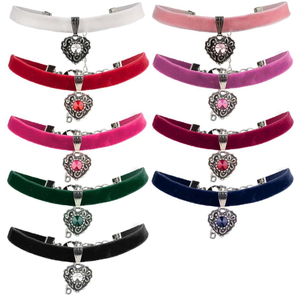 Trachten-Kropfband von Schlick AccessoiresSüßes Halsband mit Herz-Anhänger zum Dirndl oder zur Tracht. • Material: Band Polyester. Anhänger Zamak (nickelfrei). • Lieferumfang: Samtband schmal Herz (Farbe wählbar). • Achtung: Nicht für Kinder unter 12 Jahre geeignet.