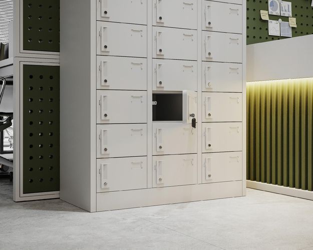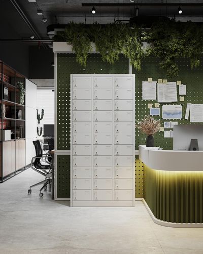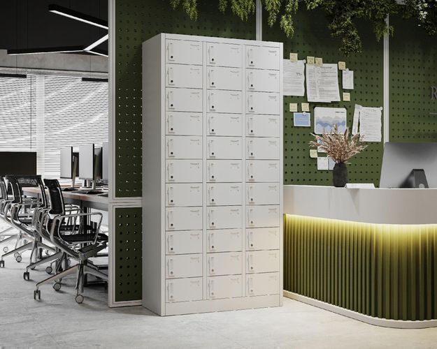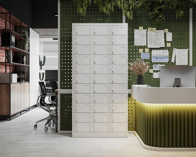 Schließfachschrank 3B11A, 33 Fächer, Metall, 185x90x45 cm, Grau