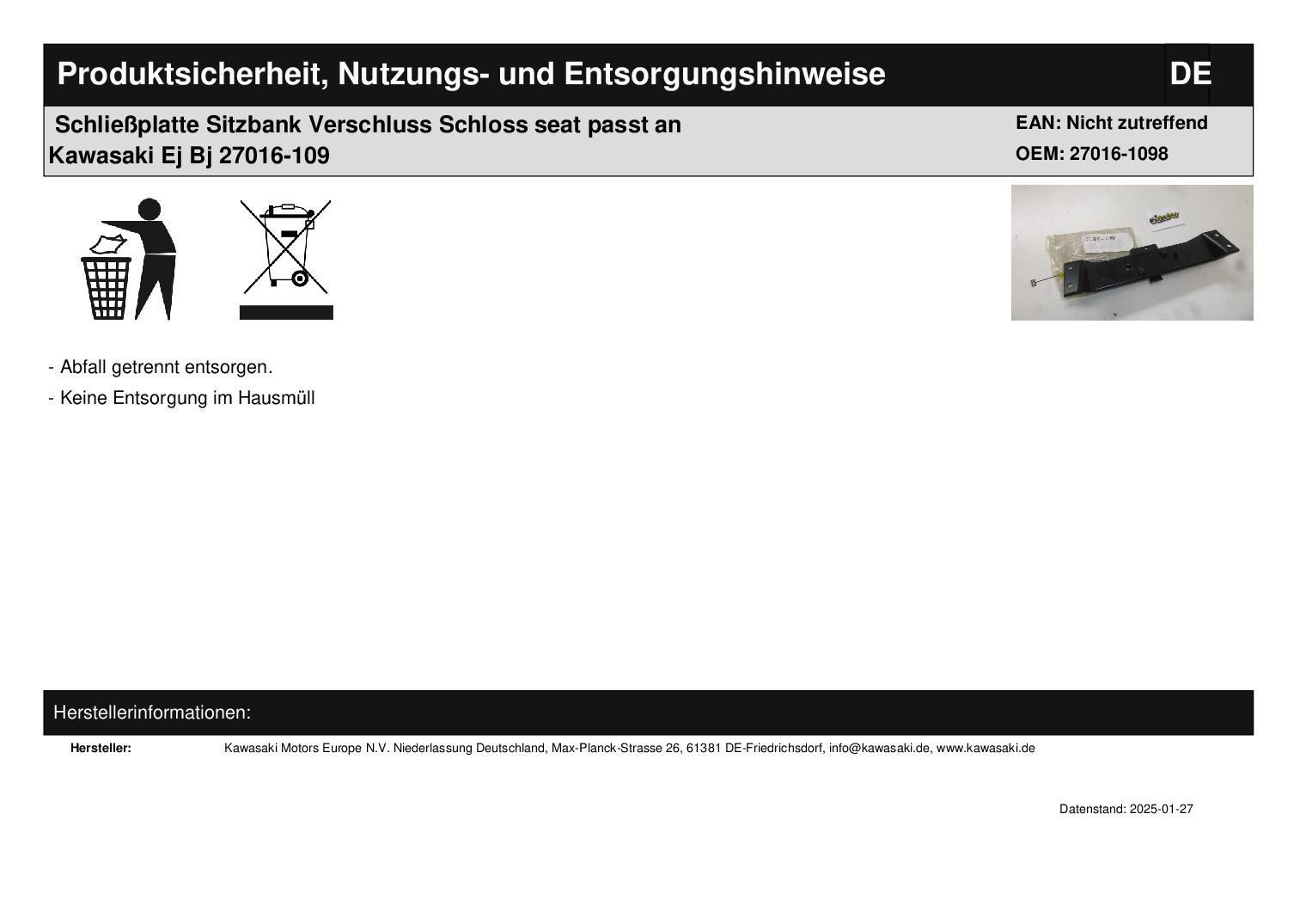 Schließplatte Sitzbank Verschluss Schloss seat passt an Kawasaki Ej Bj 27016-109