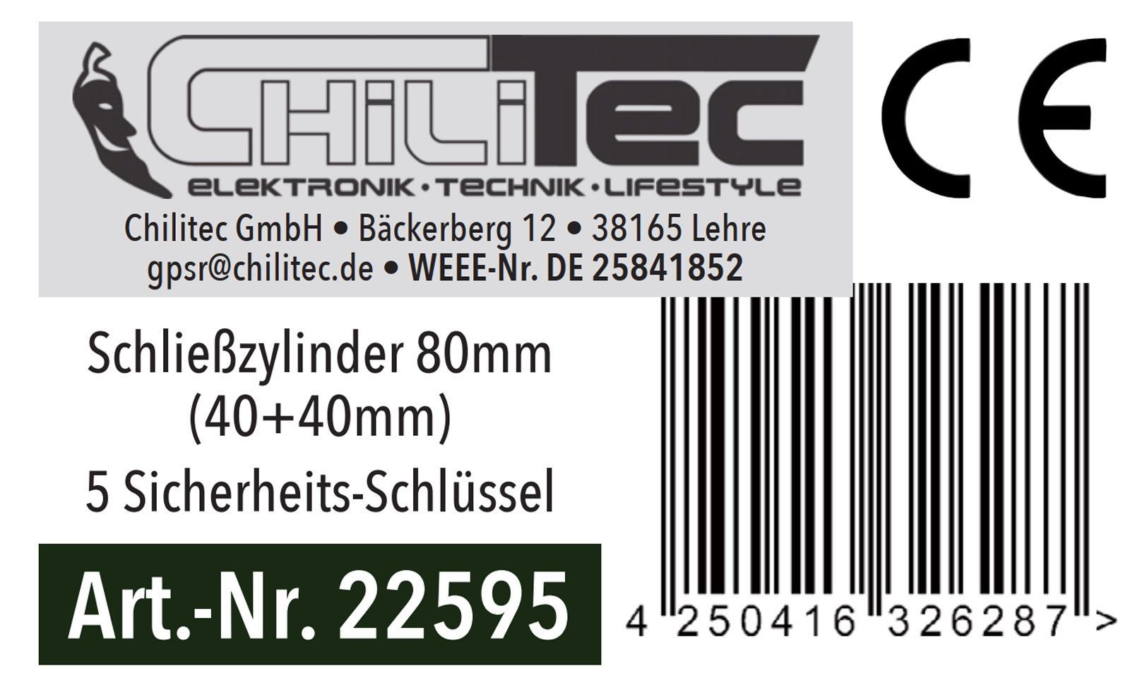 ChiliTec Schließzylinder 80mm (40 + 40mm)Profil-Zylinder, 5 Sicherheits-Schlüssel