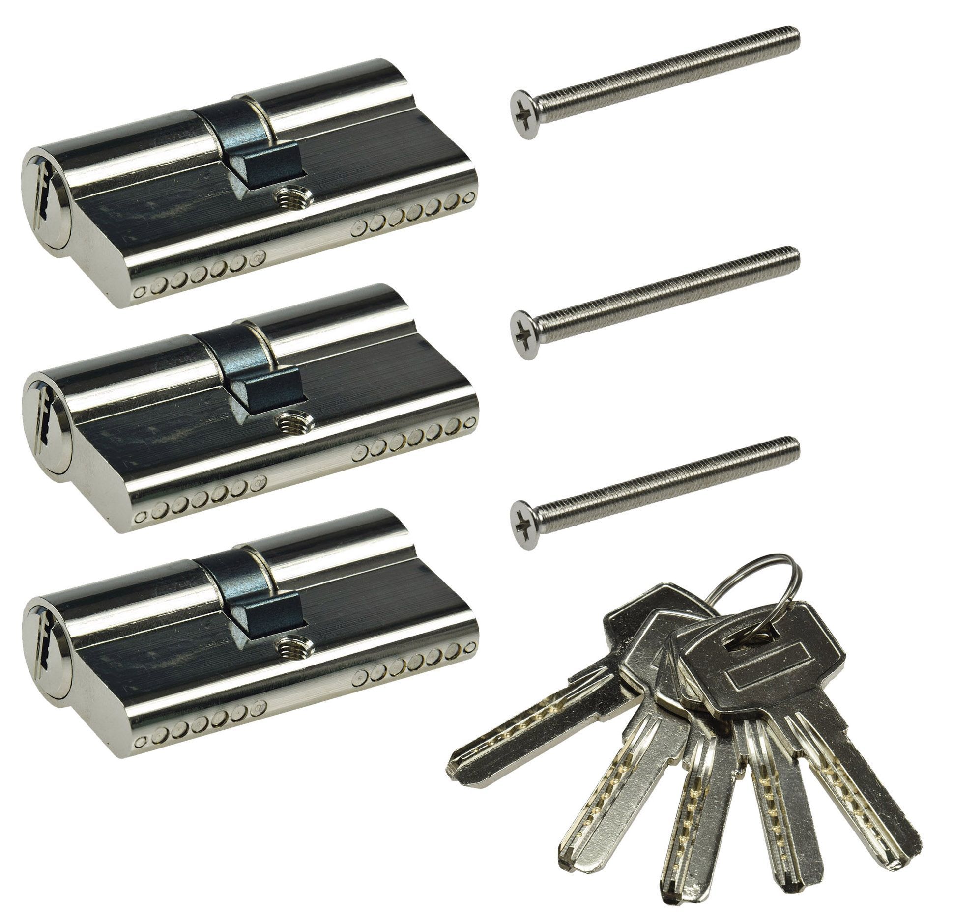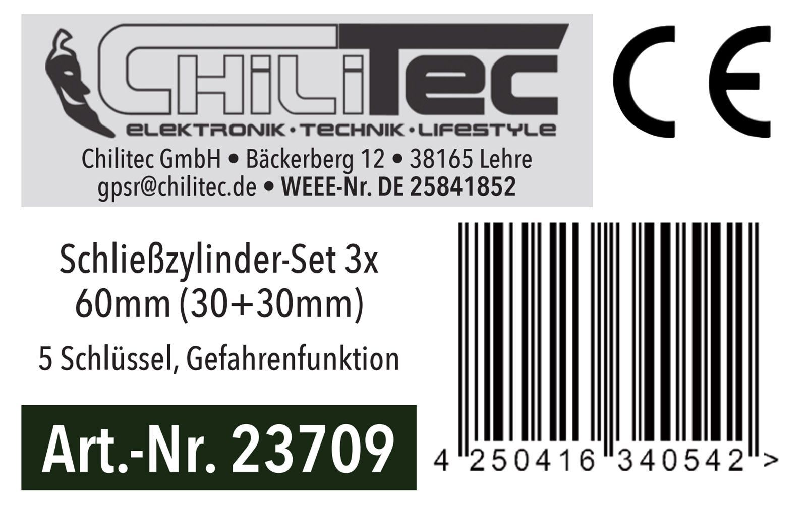 ChiliTec Schließzylinder-Set 3x 60mm (30 + 30mm) 5 Schlüssel, Not- & Gefahrenfunktion