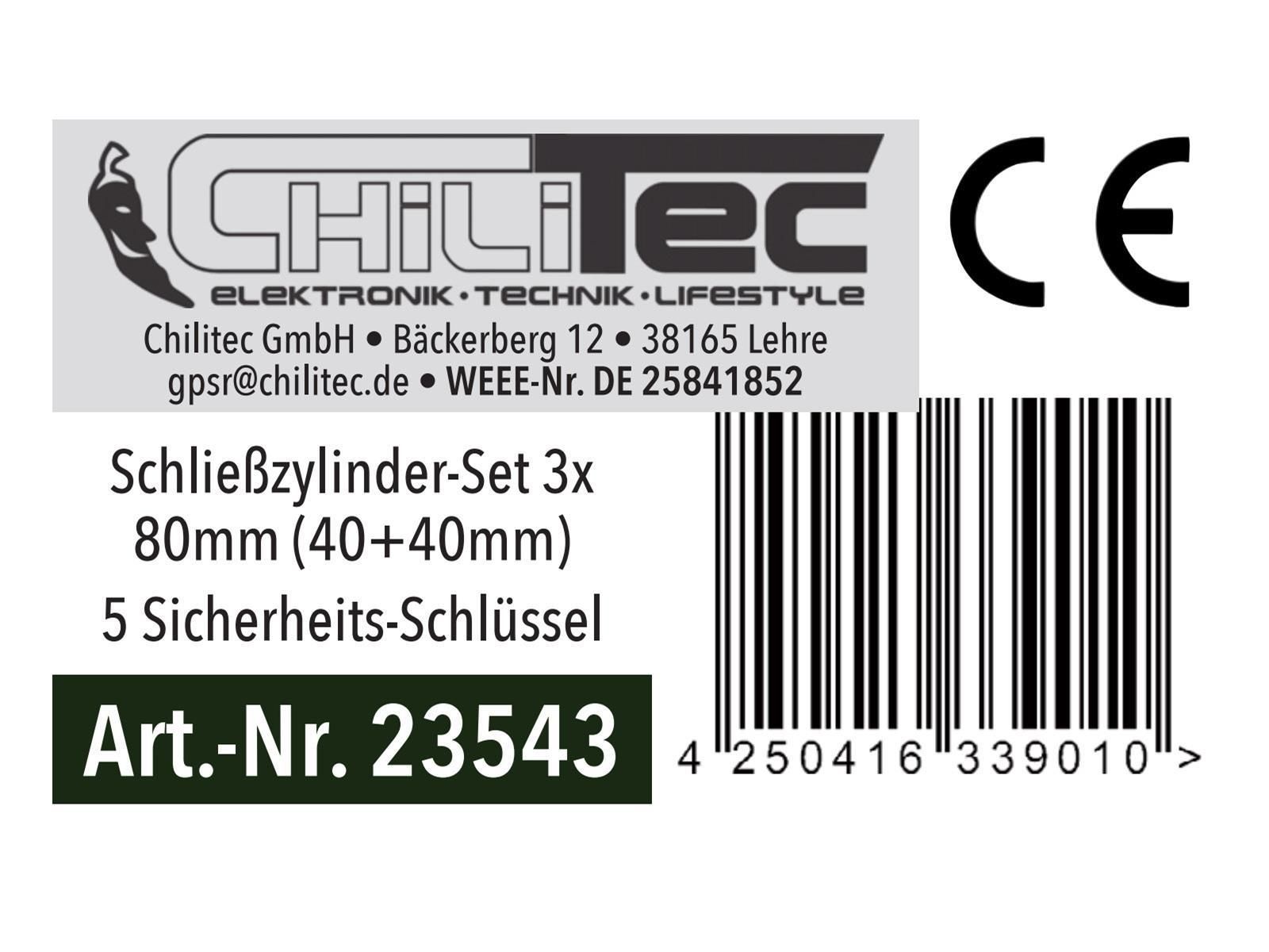 ChiliTec Schließzylinder-Set 3x 80mm (40 + 40mm) Profil-Zylinder, 5 Sicherheits-Schlüssel