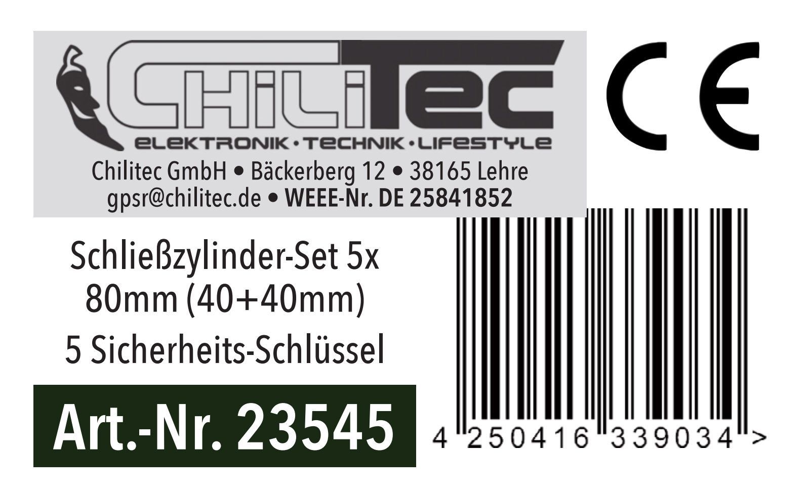ChiliTec Schließzylinder-Set 5x 80mm (40 + 40mm) Profil-Zylinder, 5 Sicherheits-Schlüssel