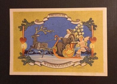 • Fröhliche Weihnachten Josef Schöffel Weihnachtsmann Kind Schlitten 165349 Ga G